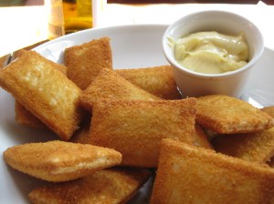And later that day, while continuing our afternoon beer & cheese tradition– begun only two days prior in Belgium– I was introduced to kaassoufflé. Yes, those are deep fried squares of cheese that you’re looking at, to be dipped in mayo (or mustard), and served as an accompaniment to beer.