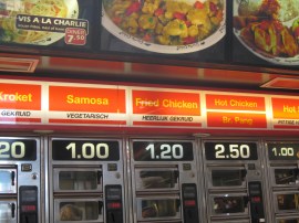 Some other Dutch discoveries included excellent Indonesian food (the Indonesian-influenced rijsttafel), various Fried Things you can buy from a wall (seen here in the Utrecht train station), and De Ruijter chocolate sprinkles for bread.