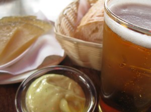 Then– back to cheese; I couldn’t stay away long– in Amsterdam, we discovered the delightfully Dutch combination of gouda cheese dipped in mustard!