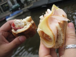 After an already-overindulgent breakfast, we packed up a baguette, sliced salami and turkey, camembert, and– of course– gouda, to take with us for an afternoon picnic. We ate our sandwiches along one of Amsterdam’s many canals (and got the feeling we were not in Wisconsin anymore).