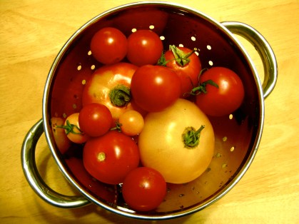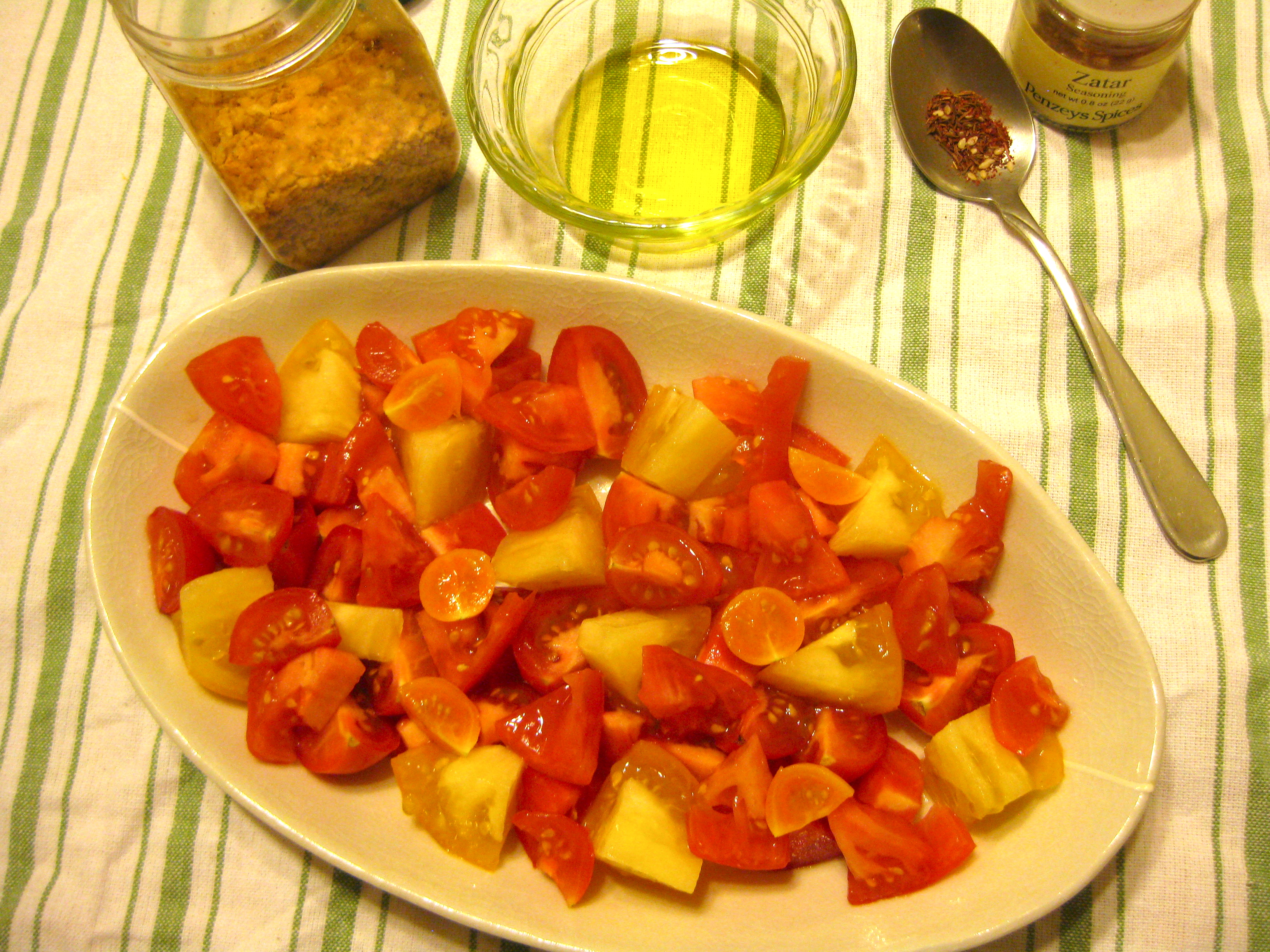 ~ 1 lb. tomatoes (anything fresh and flavorful, like cherry tomatoes, heirlooms, or romas)