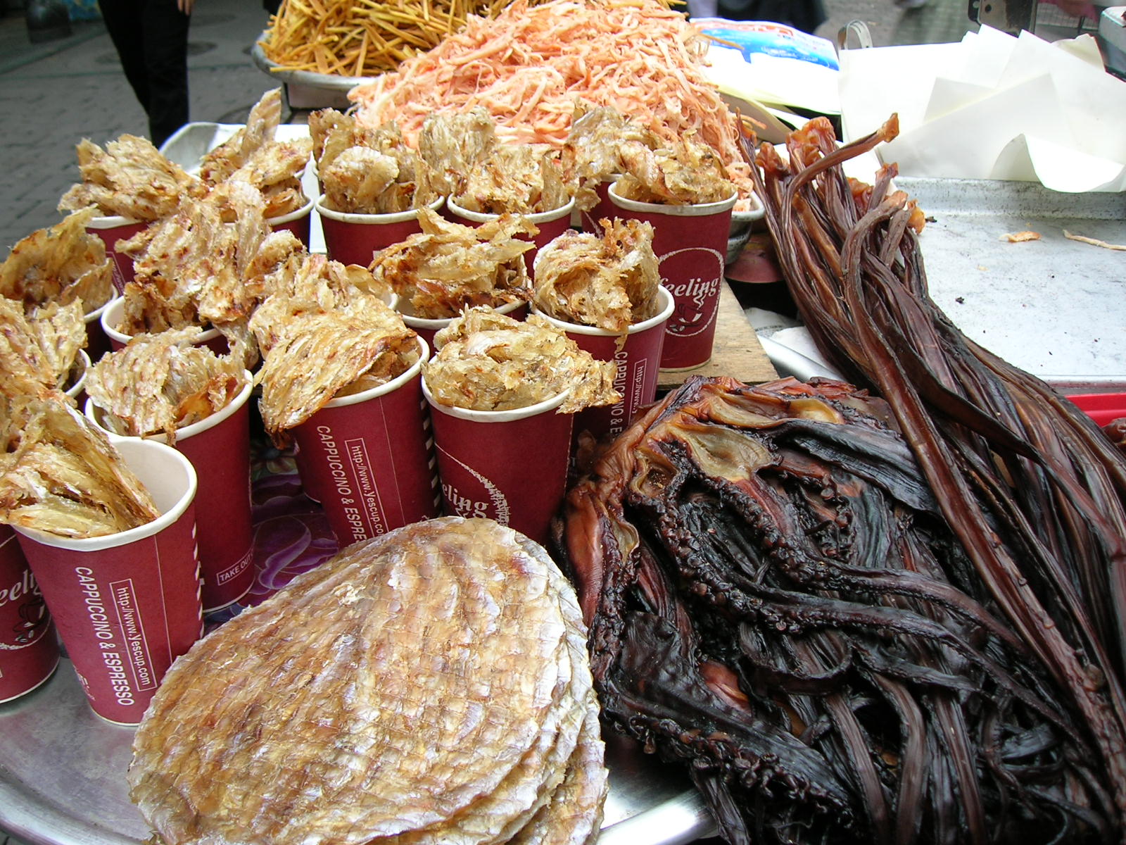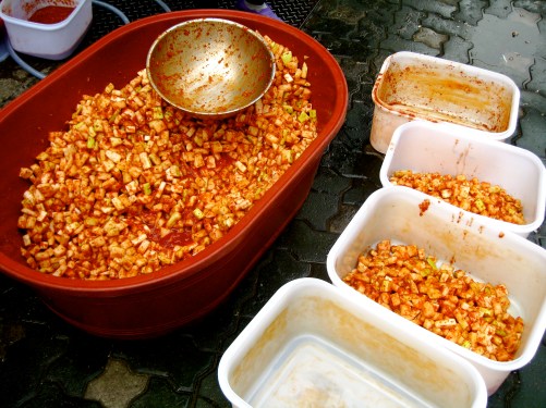 Most of these photos are from 남대문시장 (Namdaemun Market), but there are also a few of Korean take-out “junk food,” and– for something you don’t see everyday– some from a Korean/Irish Catholic church flea market/bake sale as well.
