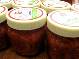 They were also selling various pastes for making Korean stews, like 된장 (doenjang) or 청국장 (cheonggukjang), two kinds of fermented soy bean paste, and various preserved seafood, like mini-shrimp, pickled octopus, and 오징어젓 (ojing-oe jeot), squid pickle:***