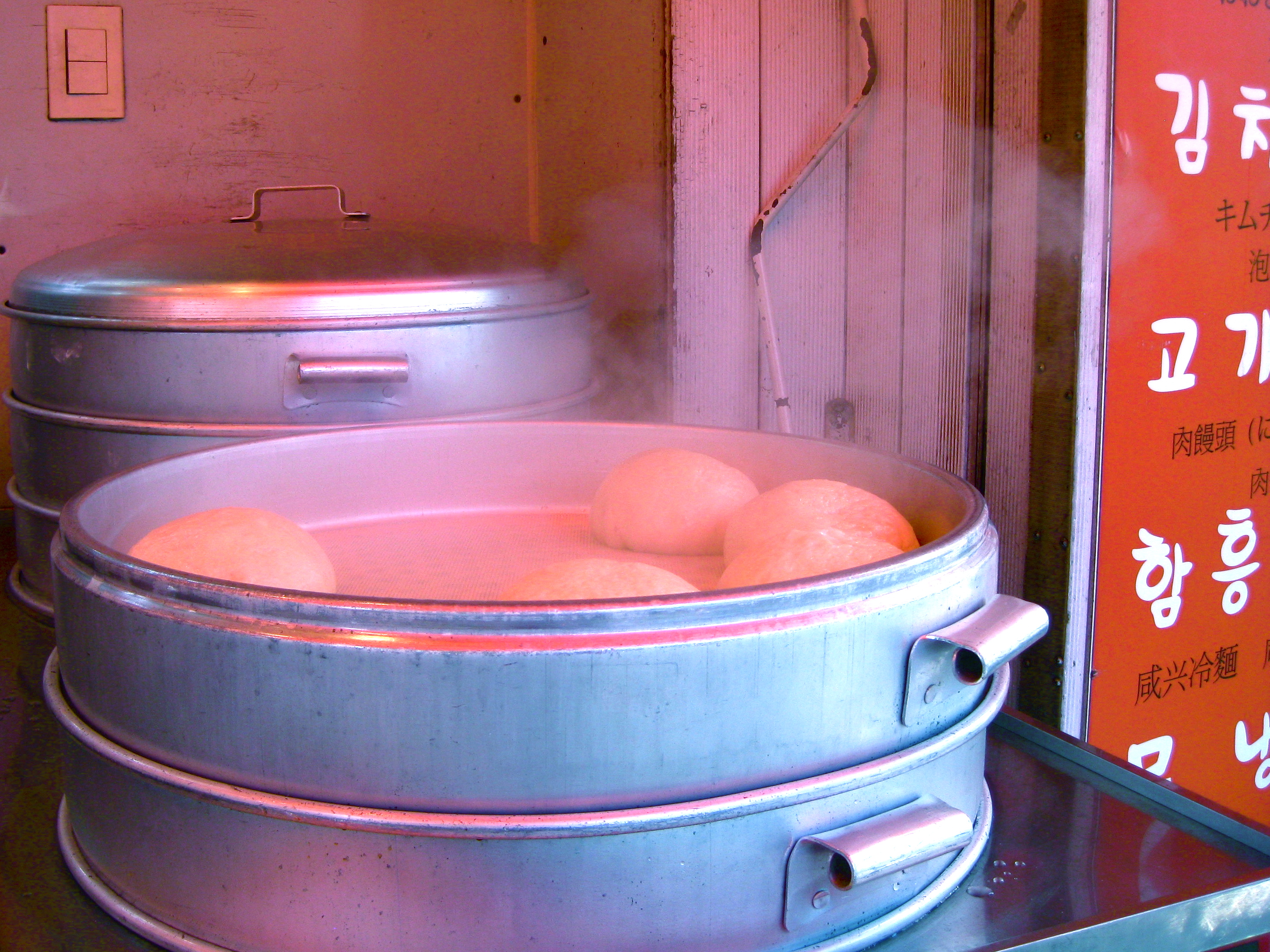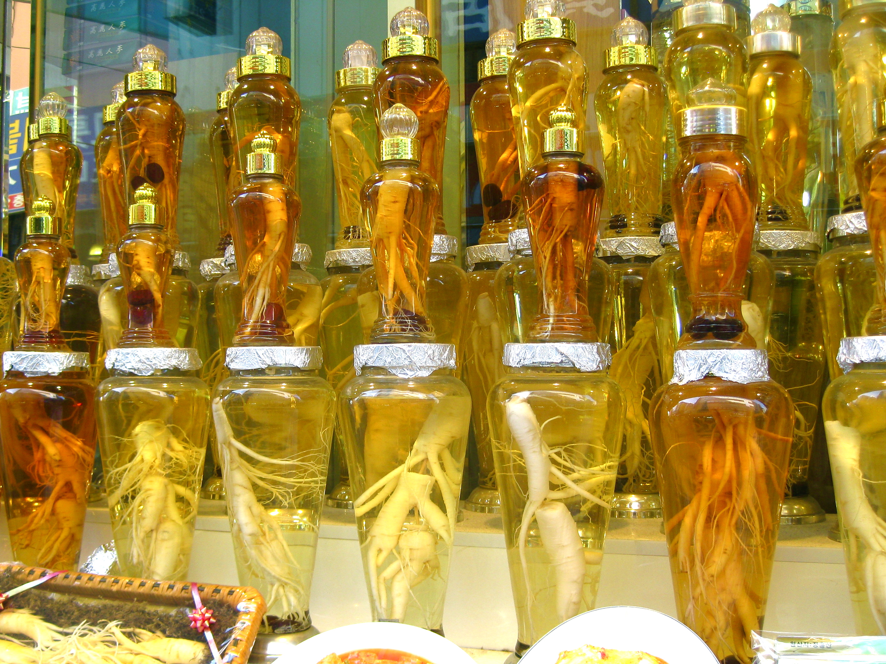 Some other common sights in Namdaemun market: Chinese-style steamed buns and creepy jars of medicinal ginseng: