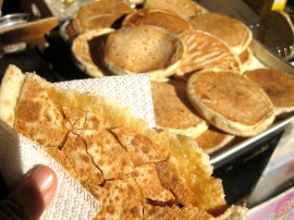 This visit to Seoul was the first time I tried 호떡 (ho-tteok), which are baked or fried dough surrounding… well, almost anything! The first ones I tried were filled with sugar and cinnamon, and baked inside cast iron molds: