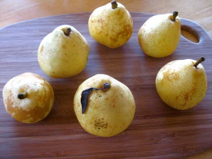 Then this fall, my roommate returned from a visit to the Bay Area with a small cardboard box bursting with at least 30 miniature and quickly-ripening pears. She generously asked me to help her eat them (and I generously told her I was up to the task). I love making salads topped with chopped pears, along with almonds or walnuts, instead of tomatoes, but at 1-2 pears per salad, and 0-1 salads a day, that clearly wasn’t going to cut it…