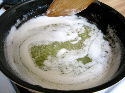 1. Brown the butter by slowly melting it in a small pan over low heat. It will turn white and frothy, then clear and bubbly, then will eventually start to turn brown. (It takes a bit of patience and constant stirring, but will smell so nice!) Once the butter has browned, stick the entire pan in the fridge so it can cool.