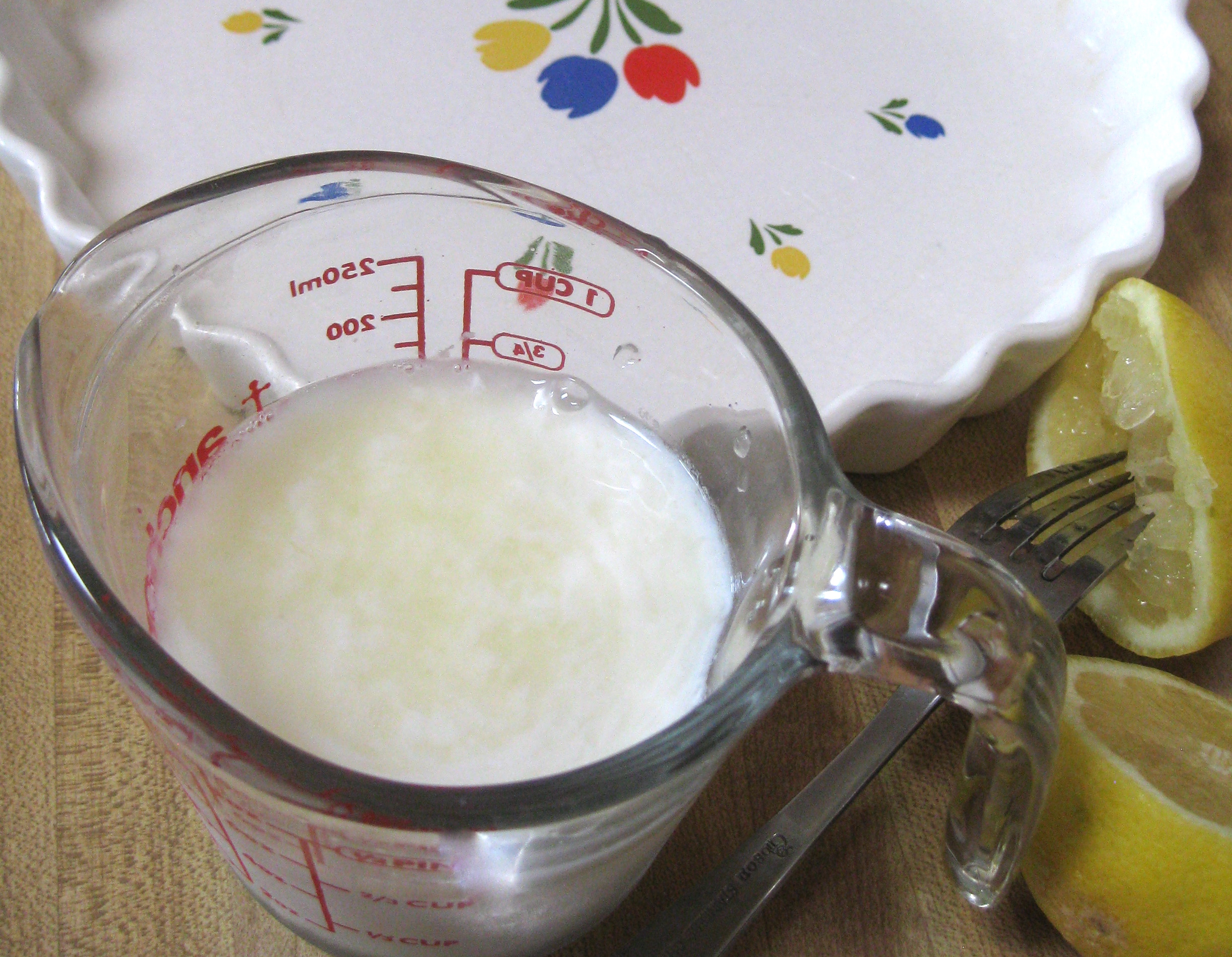 ~ ⅔ cup buttermilk (got this tip from SK: make your own buttermilk with 1 Tbsp. lemon juice per 1 cup milk, then let sit for 10 minutes.)