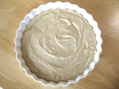 2. Pre-heat the oven to 350 degrees. Butter a 10-inch round cake pan, baking dish, or cast iron pan.