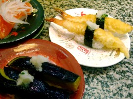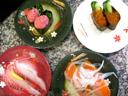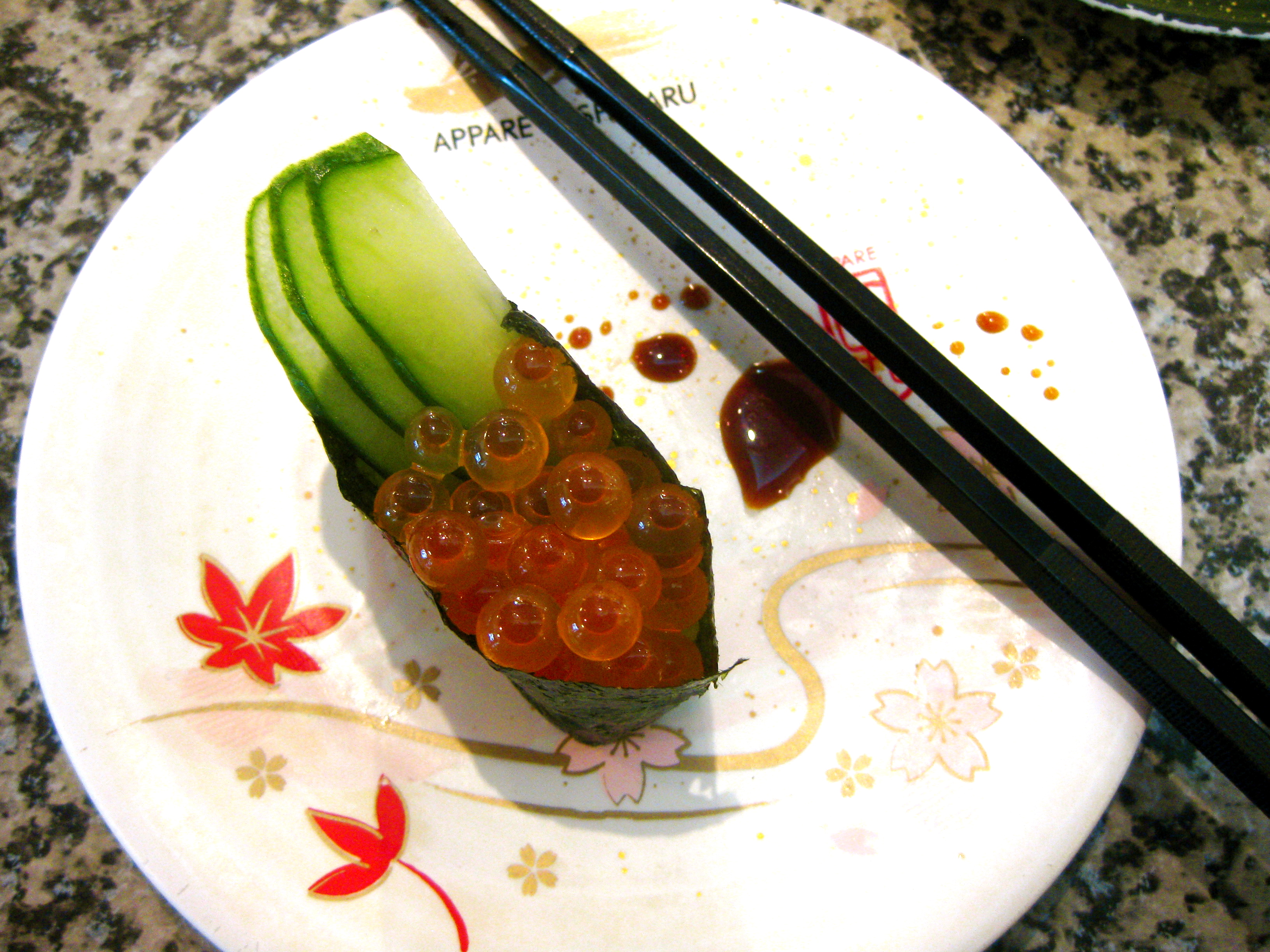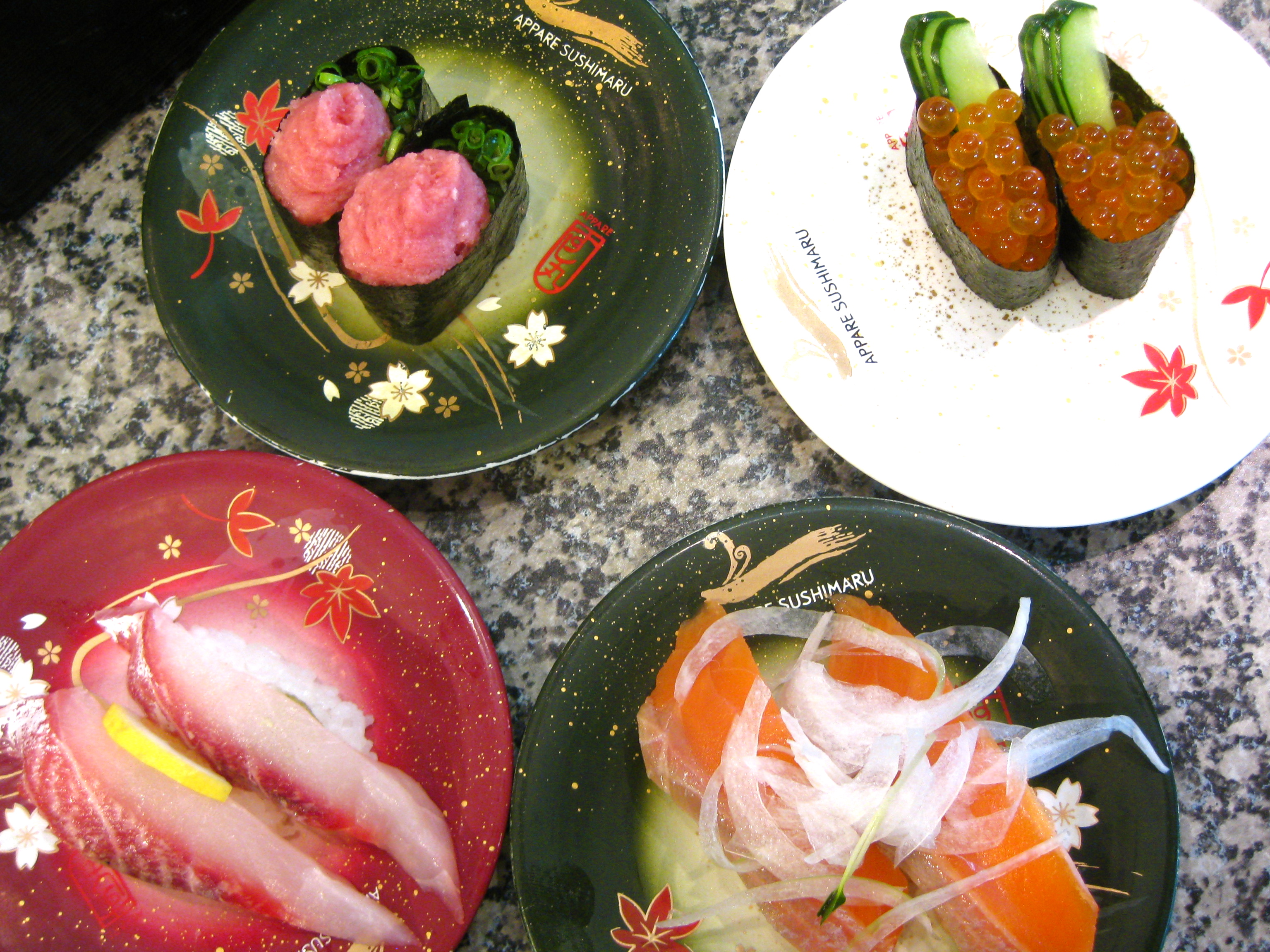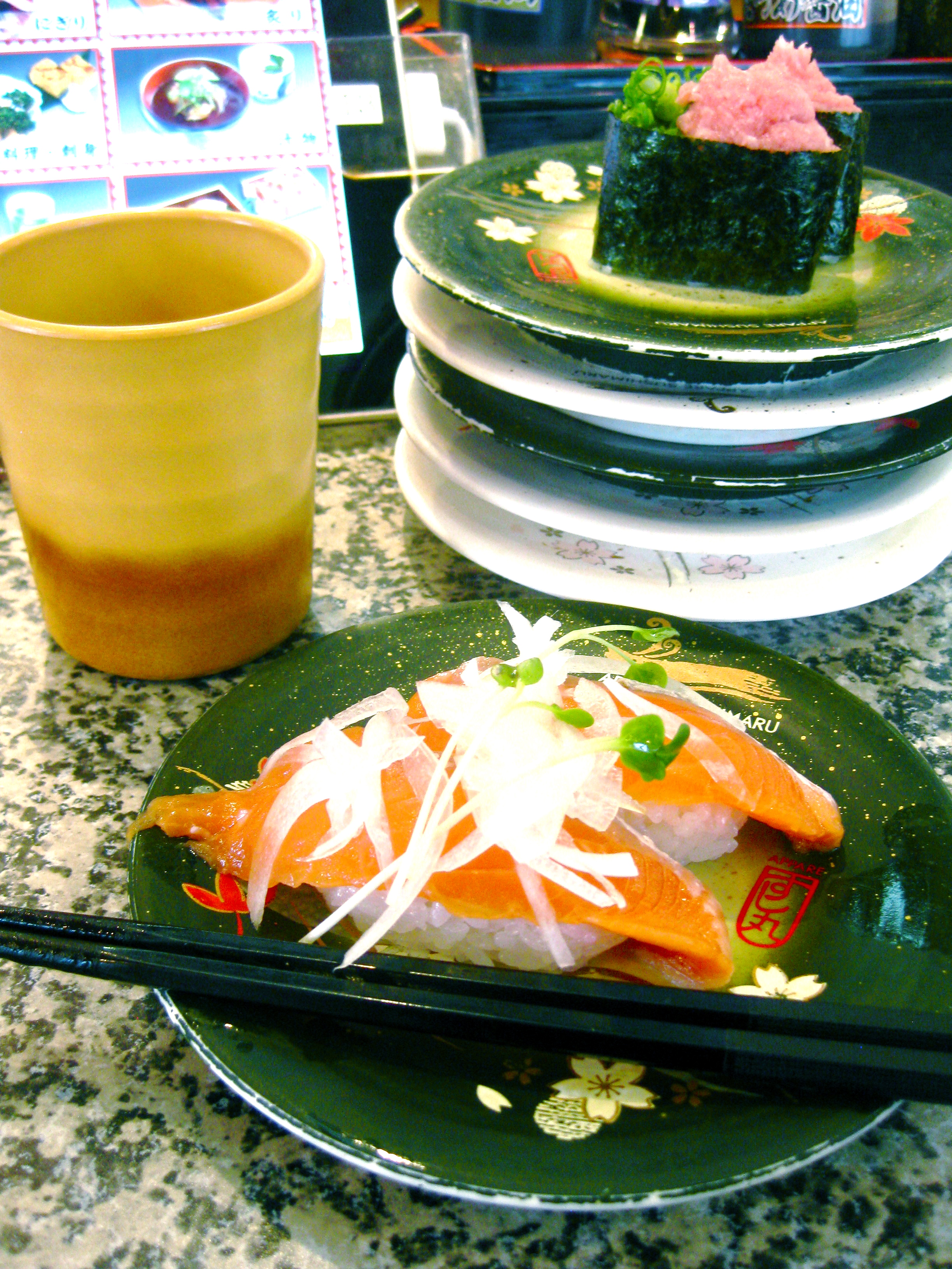 Unfortunately, Japan completely spoiled me for enjoying sushi elsewhere (say, in Wisconsin…), since all the fish there tastes so fresh. One of my favorite kaiten-zushi (conveyor belt sushi) restaurants is called Appare Sushi Maru in Okayama, where I like to start every meal with a plate of salmon, end every meal with another plate of salmon, and eat some plates of other stuff in between.