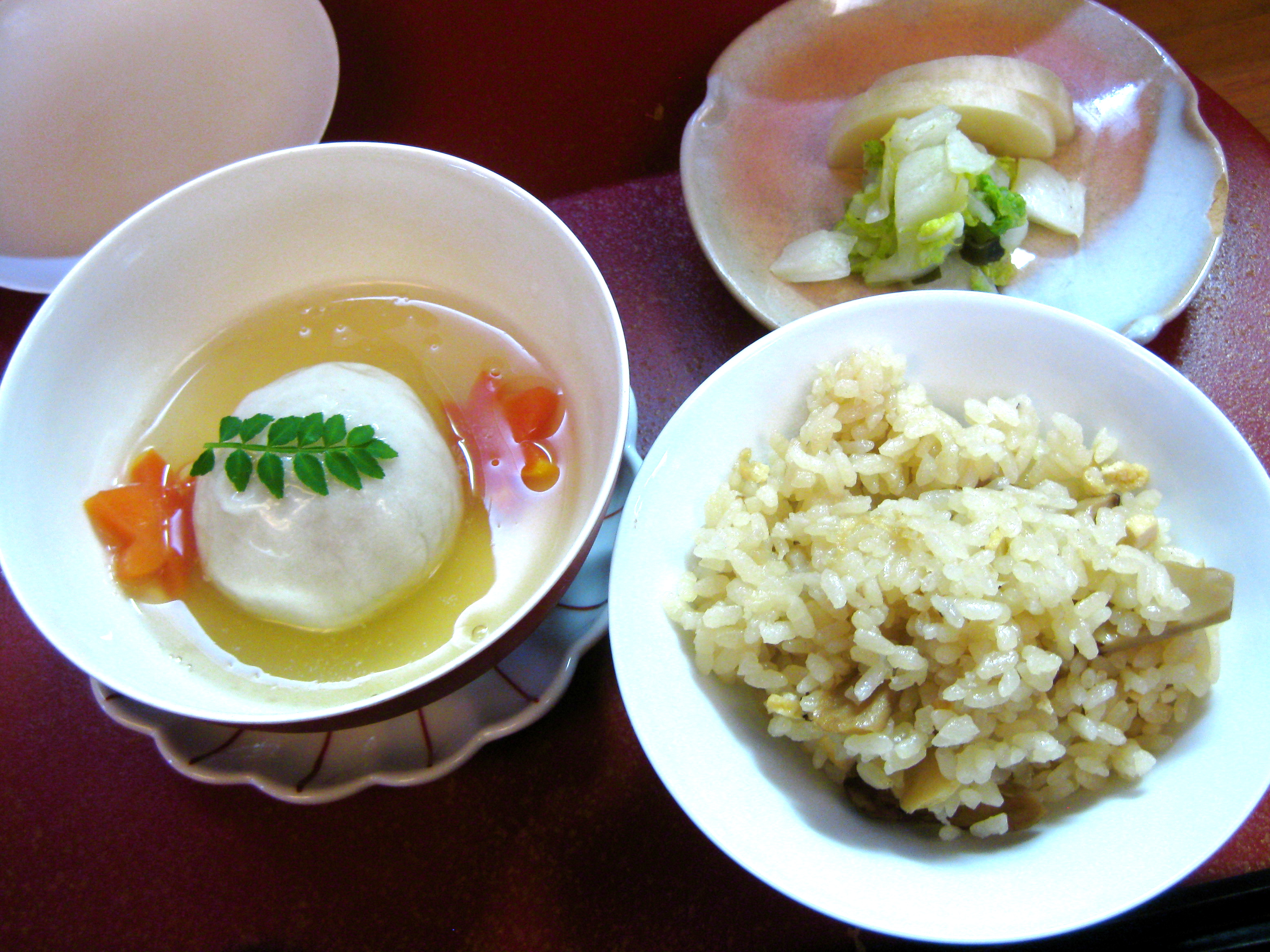 Sixth and final course: Sweet mountain yam dumpling in broth with mushroom bamboo rice.