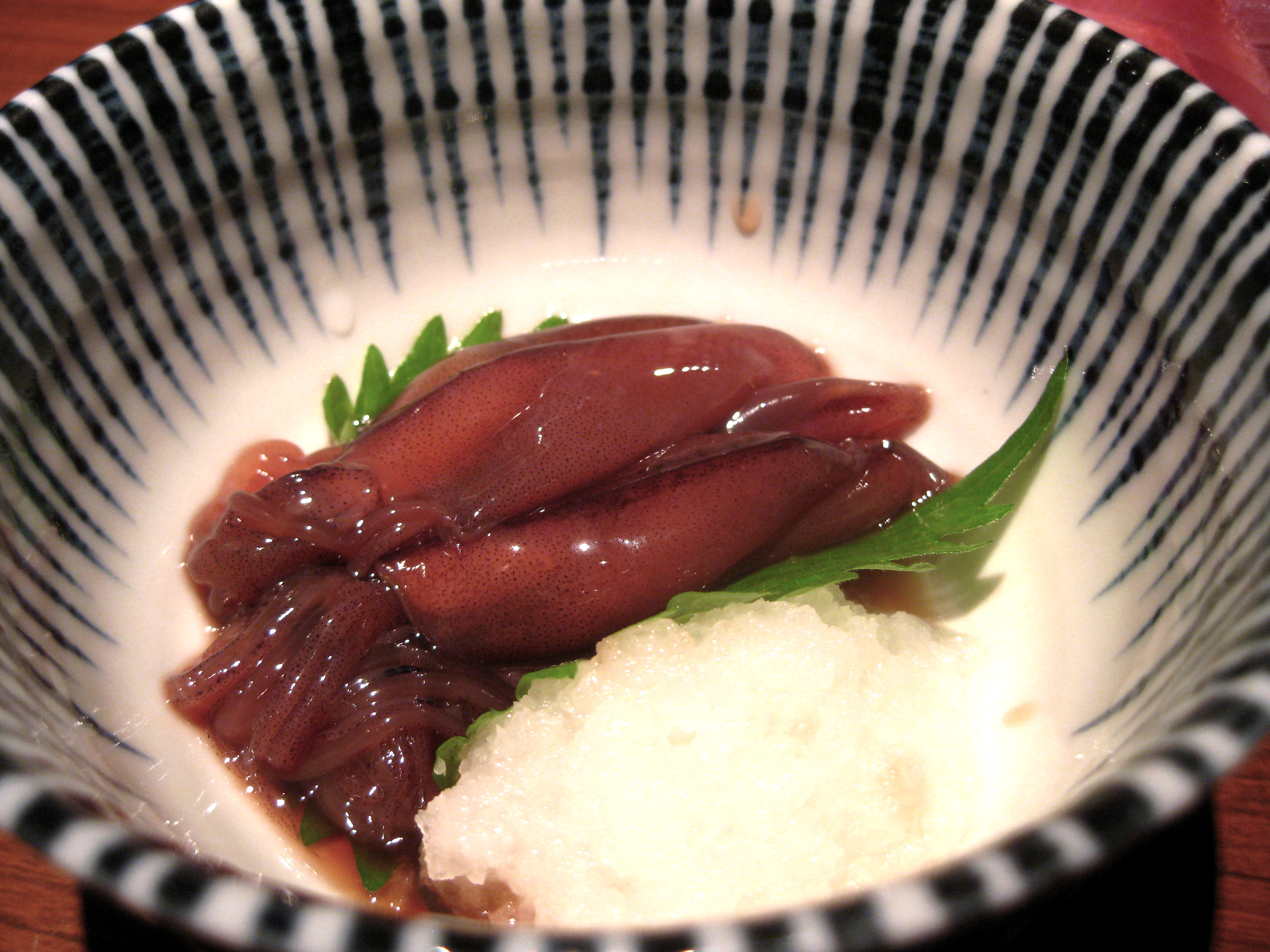 First a few photos from a seafood restaurant that some friends hand-picked for me in Tokyo. We started off with a giant platter of sashimi, and then sampled some hotaru-ika (firefly squid) okidzuke, which are squid that have been pickled alive (!) in a combination of soy sauce and their own ink (released as a defense against the soy sauce).