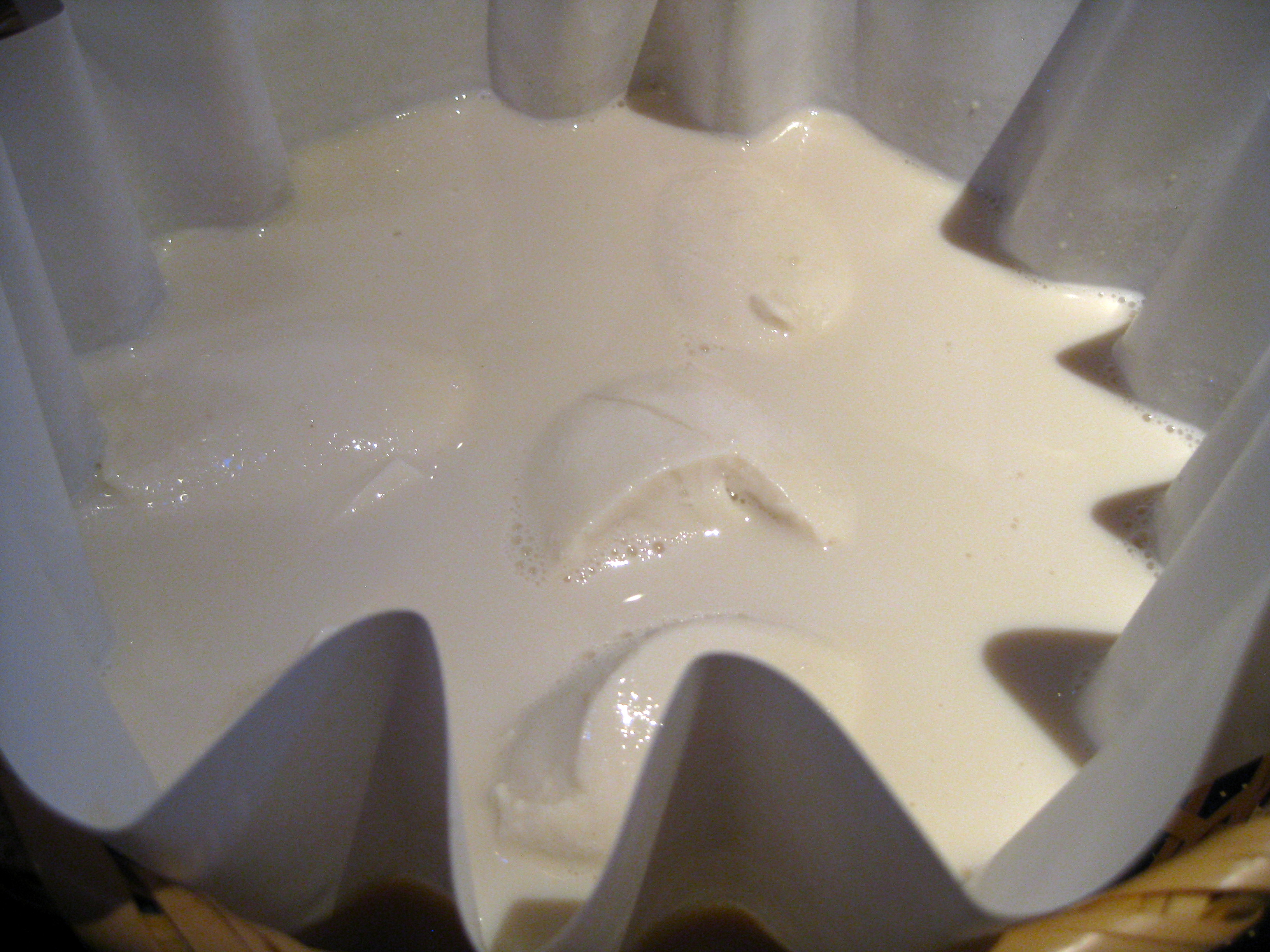 Pre-simmer soy milk; The first sheet of yuba, starting to form.