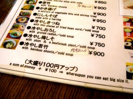 Fresh-grated wasabi root; Various styles of serving soba noodles on a menu in Kyoto.