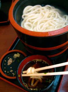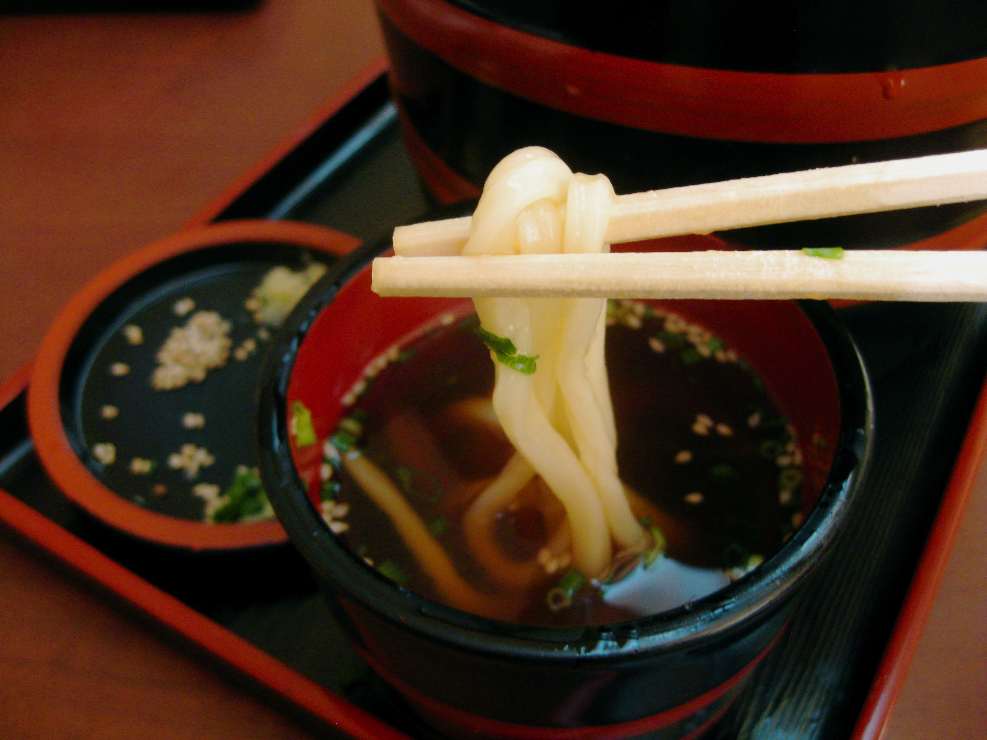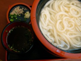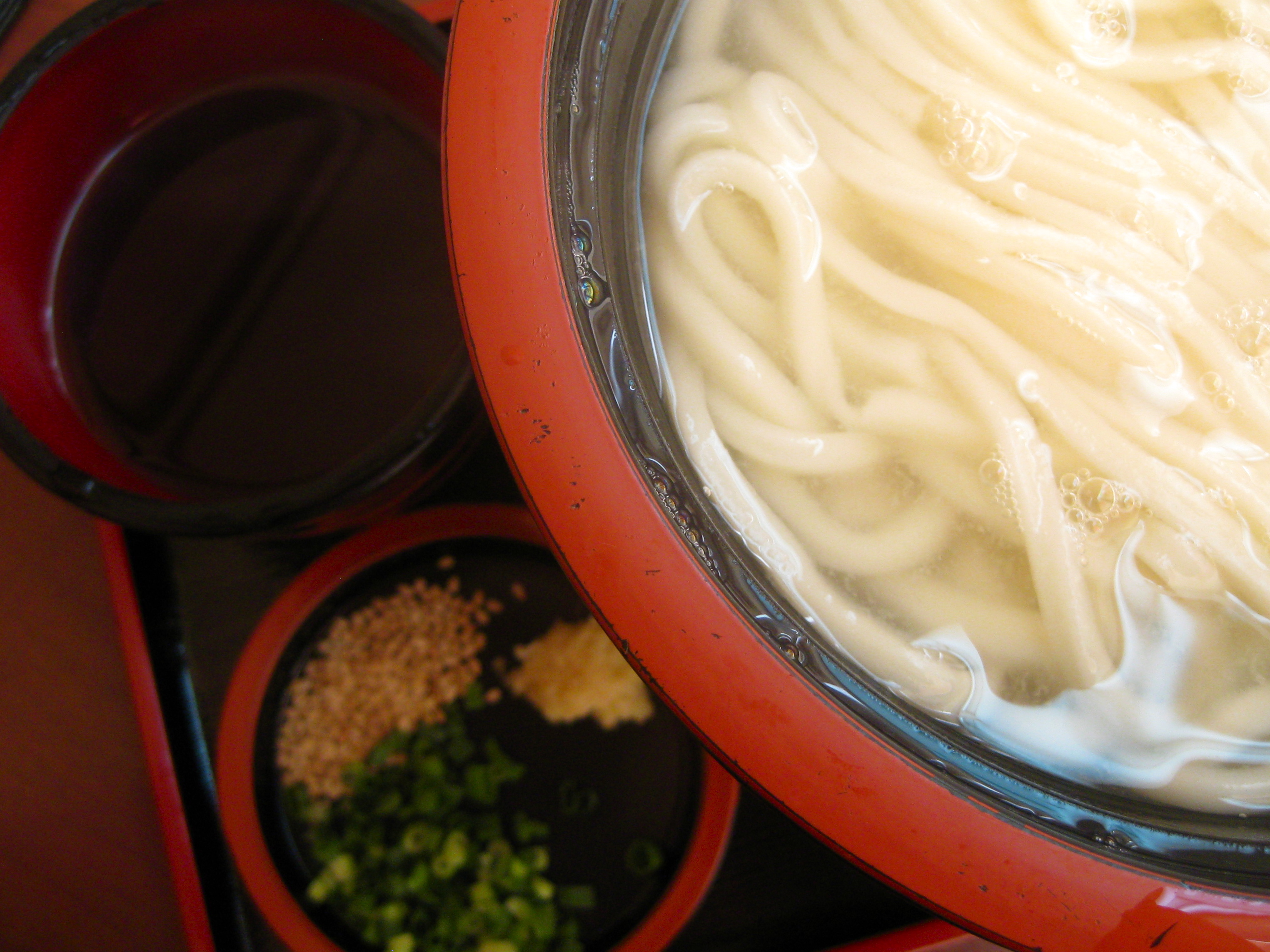 This trip, I went out of my way at least once in pursuit of a meal. Kagawa prefecture (on the island of Shikoku) is famous for a type of udon (thick wheat noodles) called Sanuki. I went to Takamatsu city, in Kagawa, for an afternoon just to walk around, explore a bit, and eat some udon.