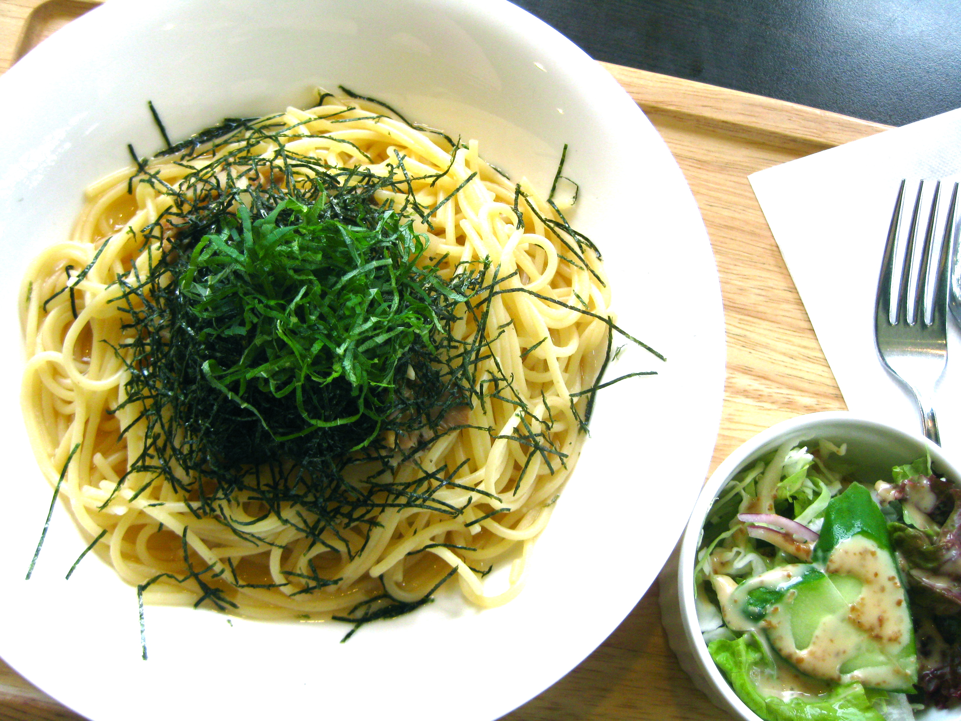 Japanese-style Spaghetti, with mushrooms, seaweed, and shiso.