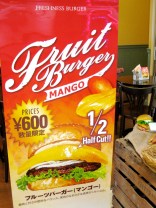 Mango on a “Fruit Burger” at Freshness Burger; “Tacos meat stuffing” on rice.