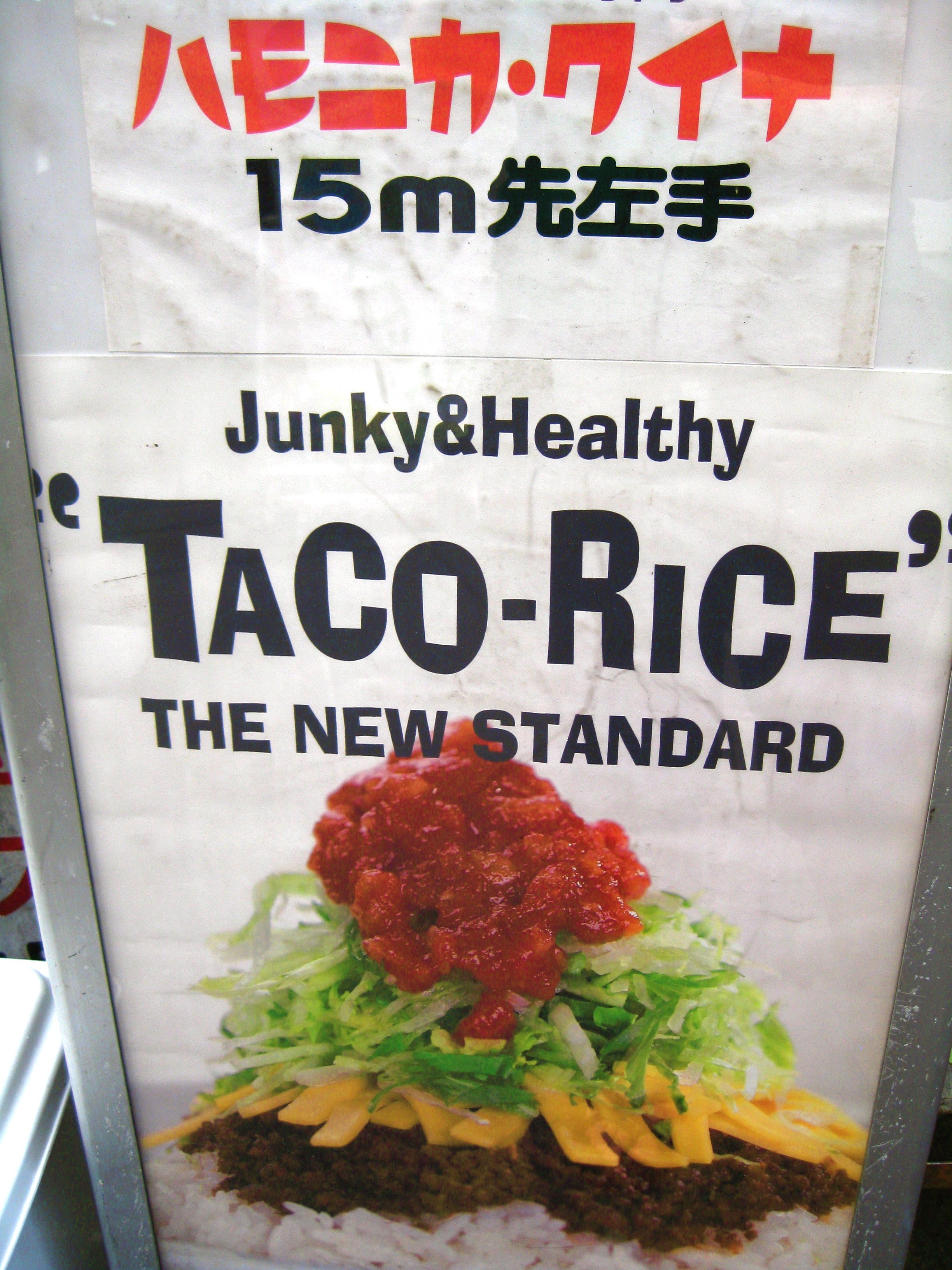Indian curries in Japan are served with side salads of cabbage, corn, and mayo, pizzas are topped with corn and mayo, or shrimp and raw egg, and then there is the Okinawan specialty, “Taco Rice”…