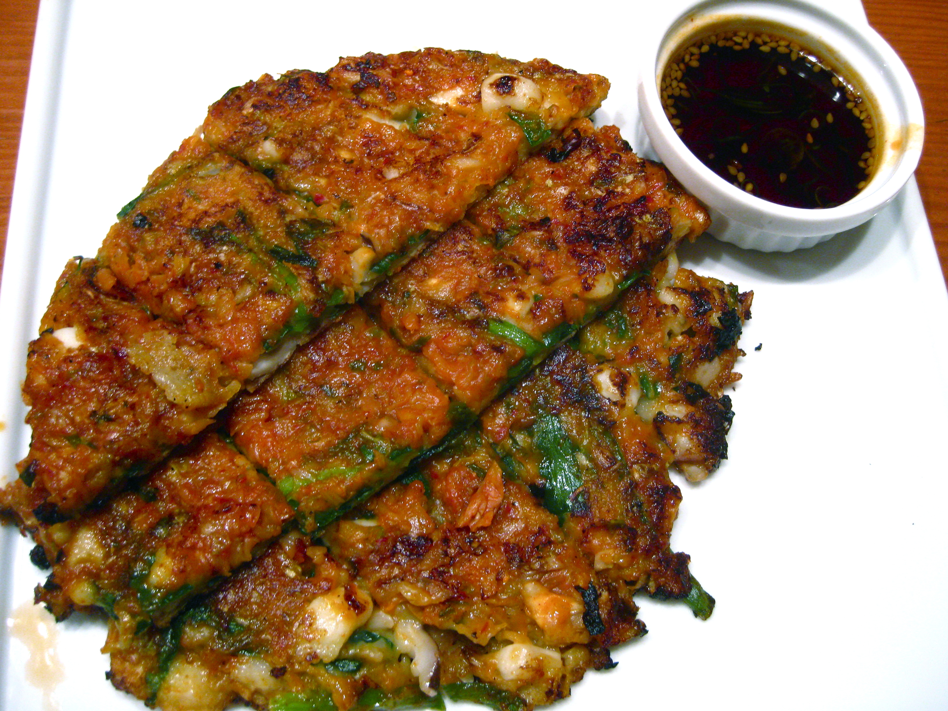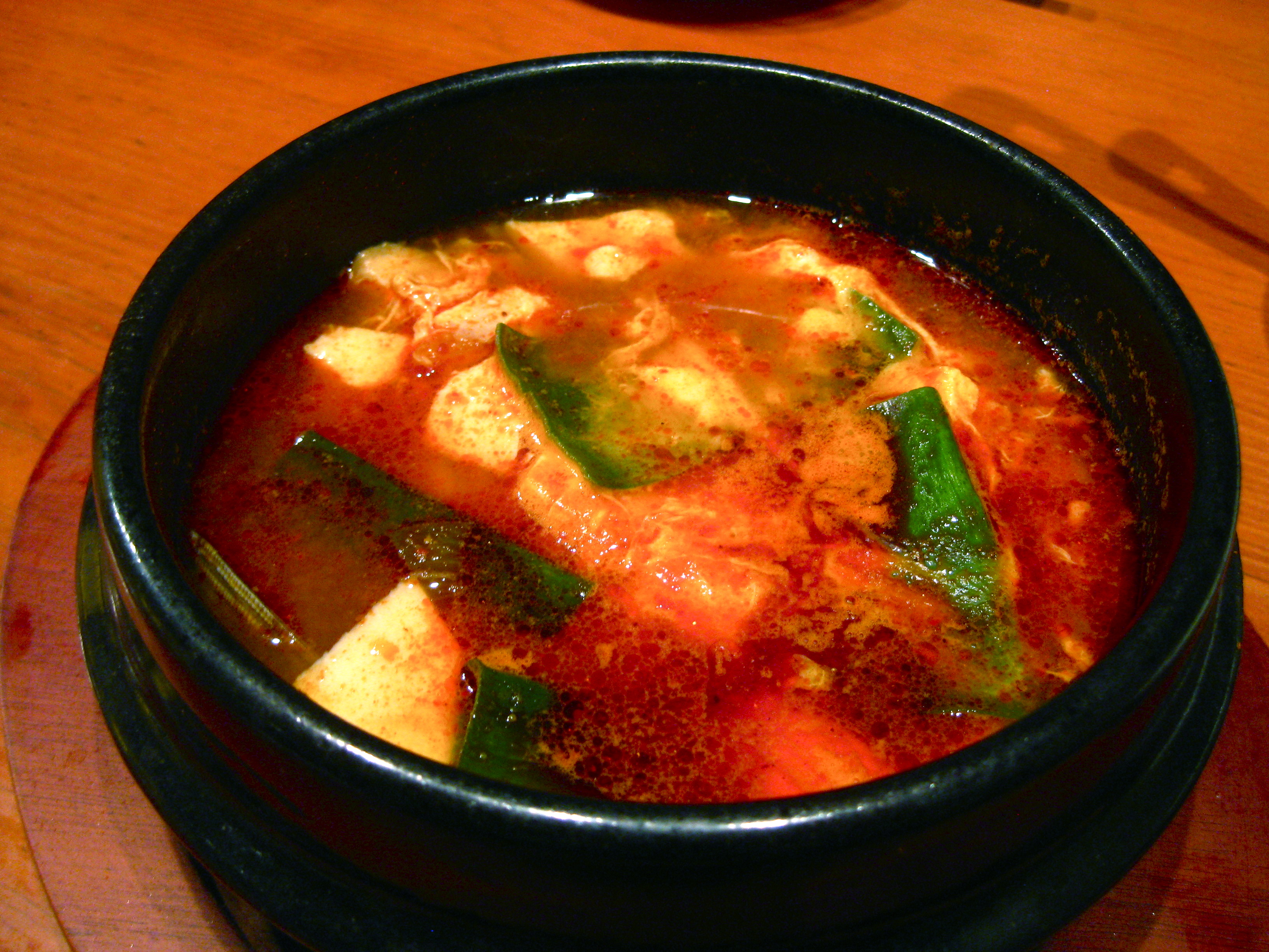 Korean Sundubu Cchigae (soft tofu chili soup) and Hemul Pajon (seafood pancake).