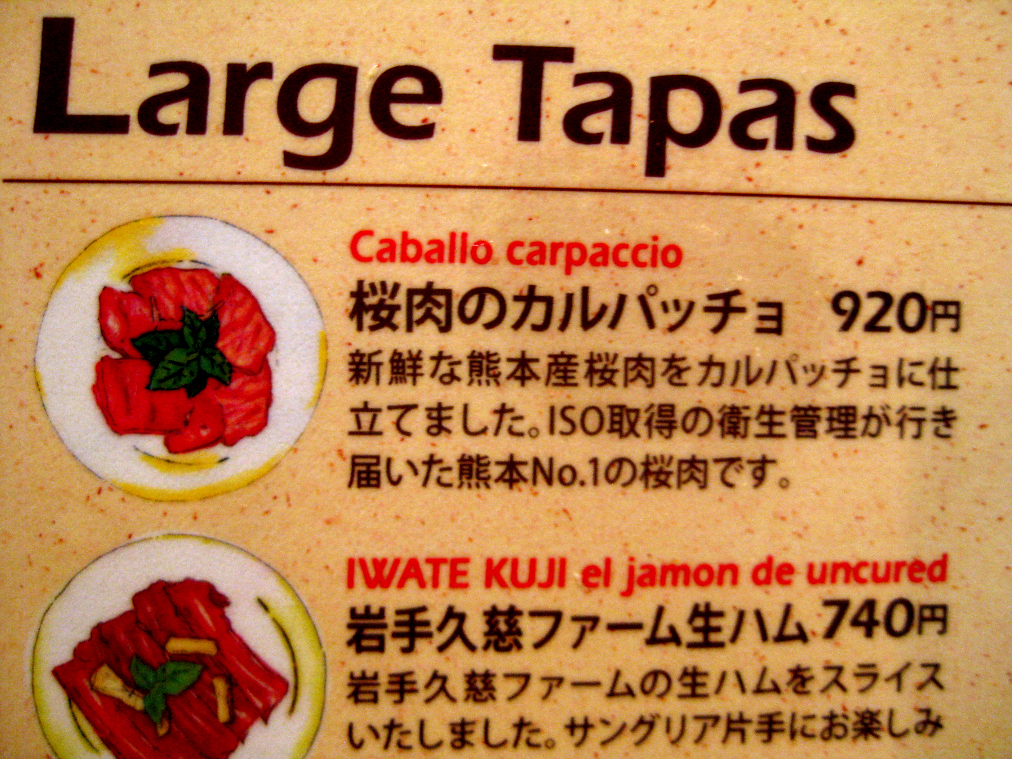 Caballo (Horse) Carpaccio at a Tapas restaurant in Okayama.