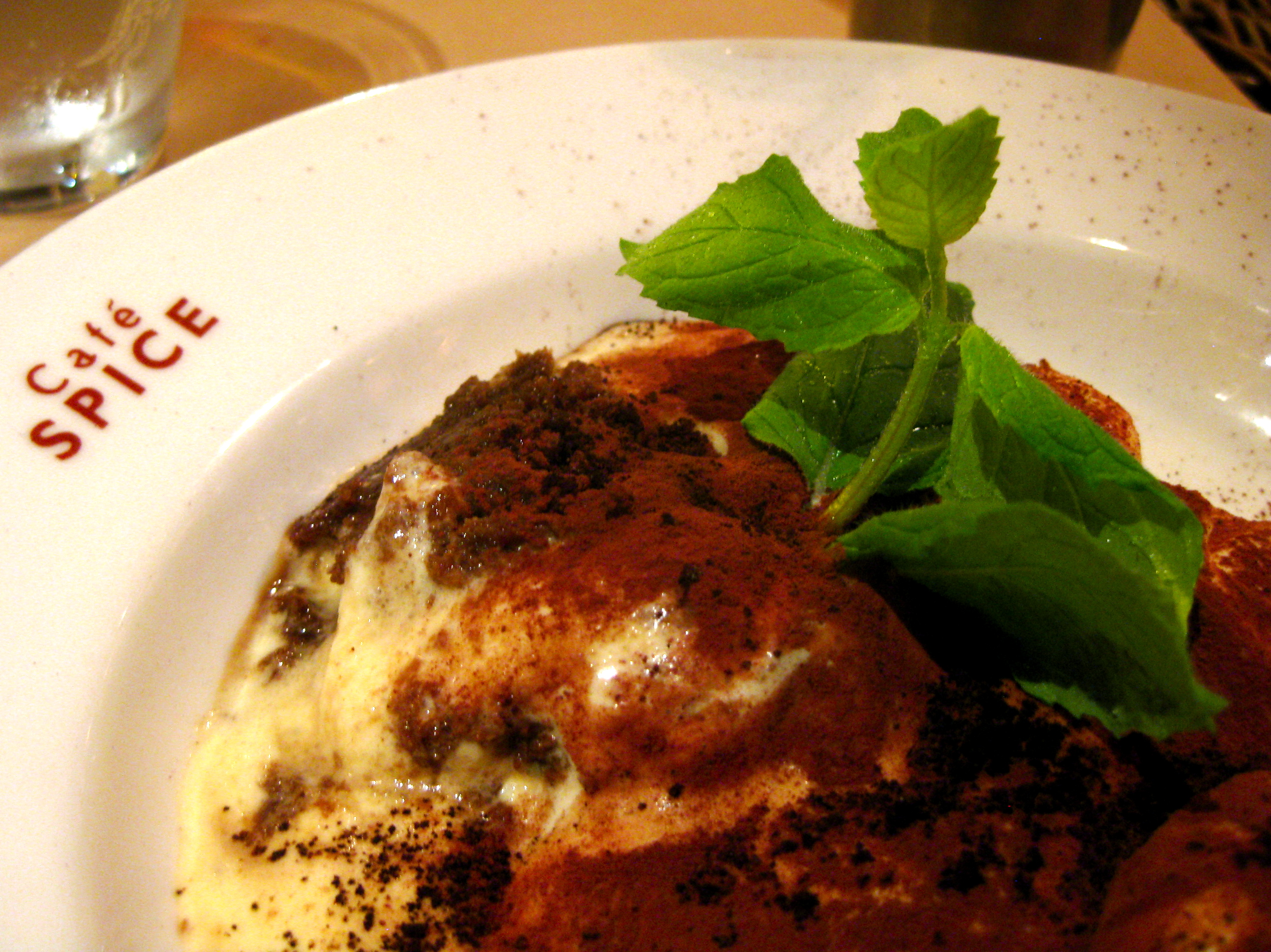 Tiramisu at Cafe Spice in Hiroshima; Plastic pasta on display in a store window (Japanese-style Spaghetti with mentaiko, fish roe; Squid Ink sauce Spaghetti with calamari).