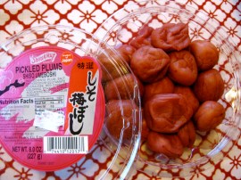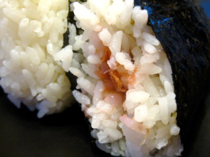 At home, I like to make them with pickled plum (umeboshi— technically a type of tiny apricot). If you’ve never had umeboshi before, you might be surprised at the strength of the sourness. Some people probably find it overwhelming; I find it addictive. (In small quantities.) To me, it is one of the more perfect rice ball fillings, since I’ve eaten onigiri that could use a tad more tuna and mayo, but a little bit of pickled plum goes a long way.