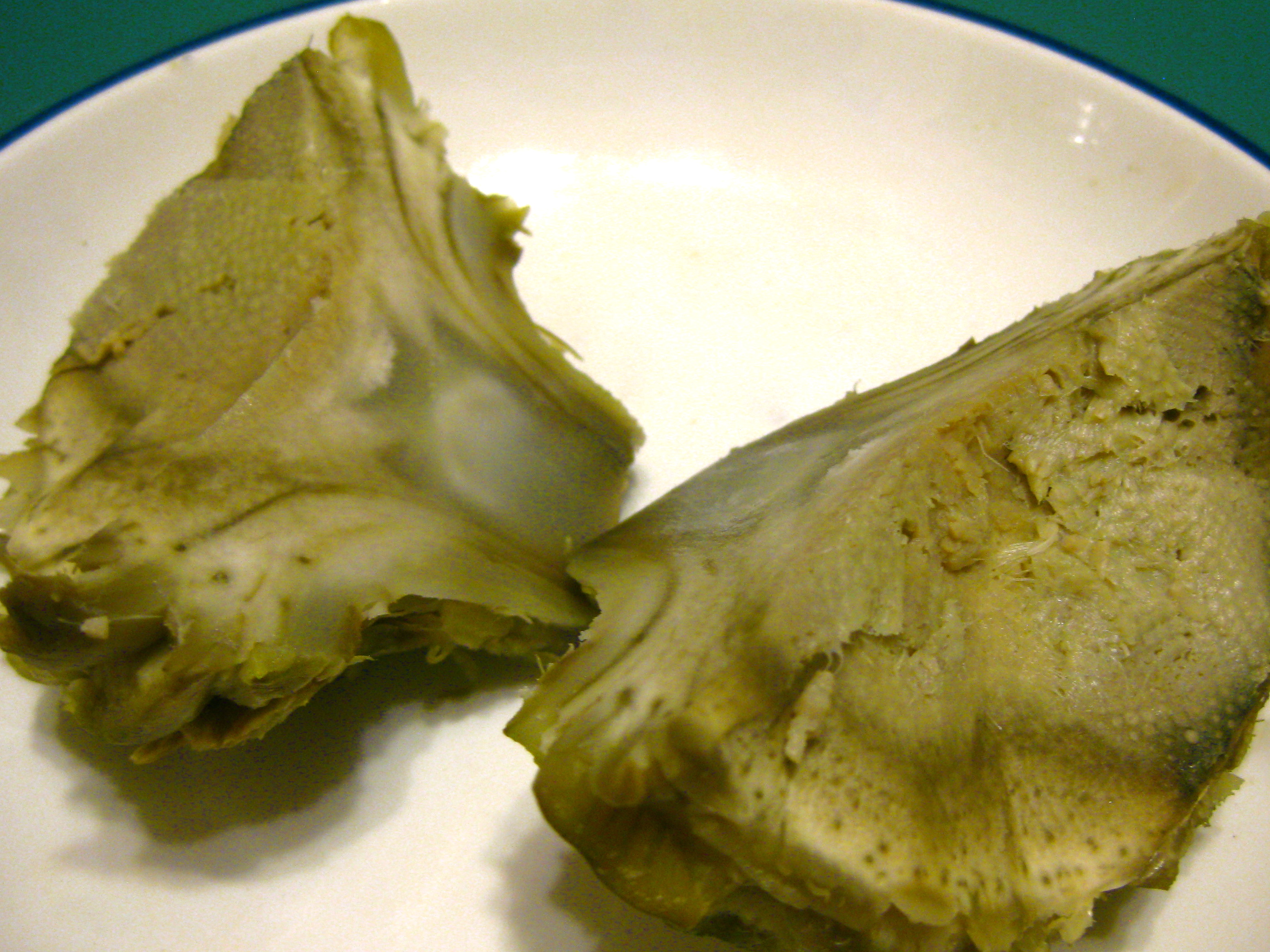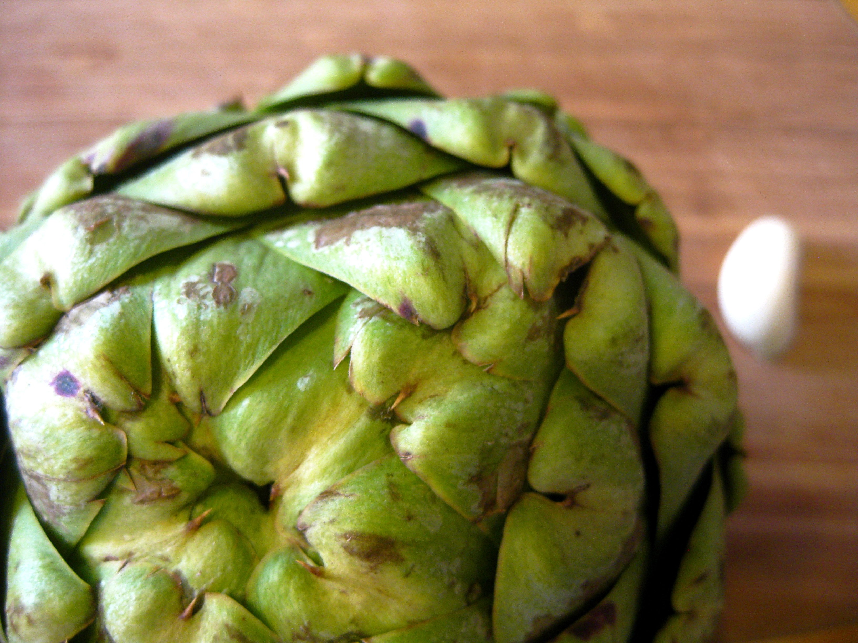 The “frost-kissed” artichoke did indeed look a little visually distressed, but it was purported to only be damaged (browned, like sunburn) on the tips of the leaves, and to have a subtle nutty flavor, which, I think, it did.