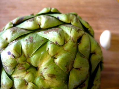 At any rate, given how often I’ve been steaming up artichokes recently, I thought I’d write a quick post about how I do it, and tack on a tip for one of the yummiest artichoke dipping sauces ever, other than straight up melted butter.