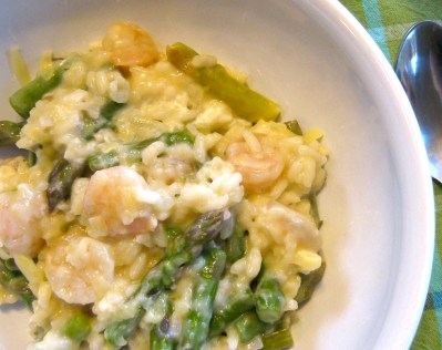 Asparagus Risotto with Shrimp, Lemon, and Goat Cheese