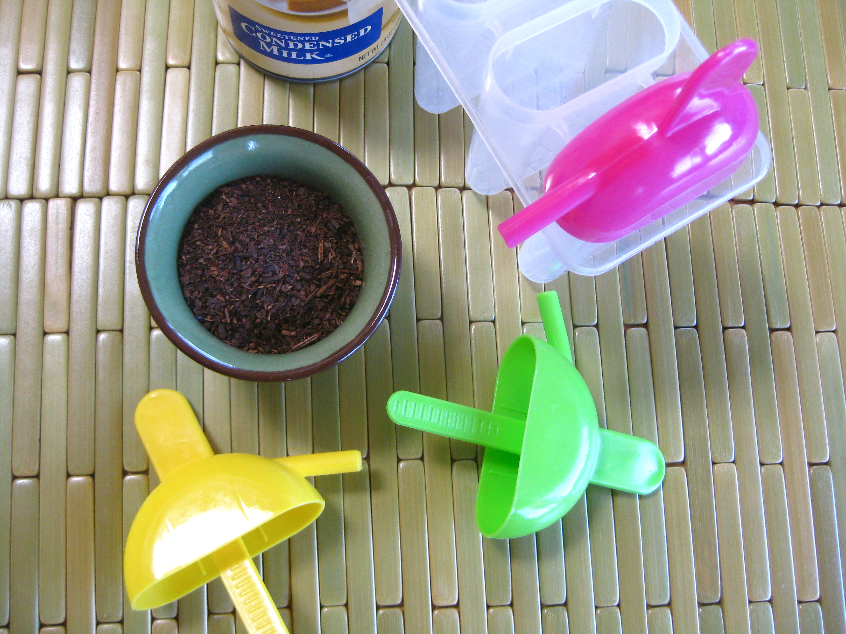 3. Pour the tea over the condensed milk and stir to mix well. Then carefully pour the mixture into the popsicle molds.