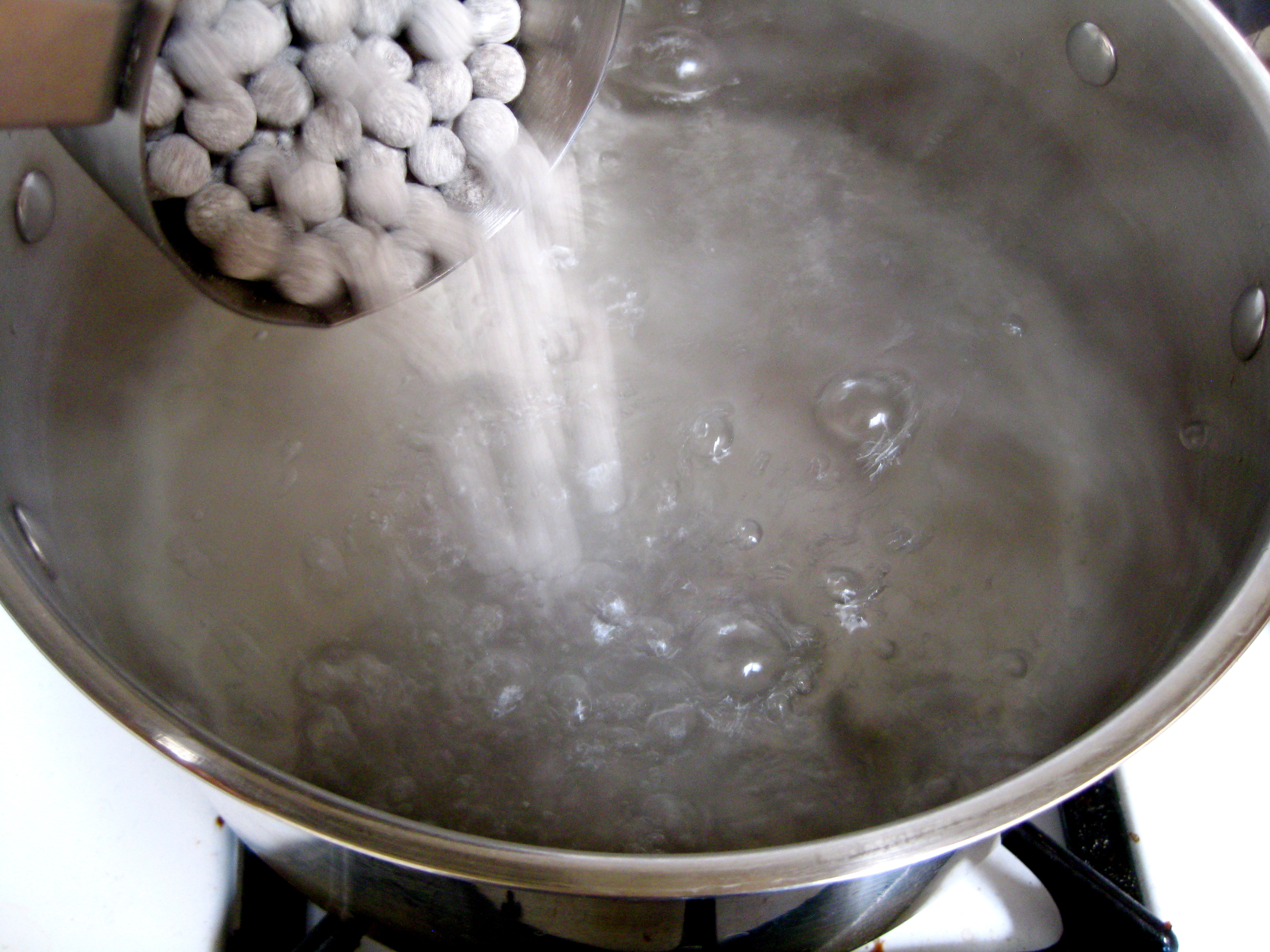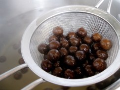 1. If you’re making boba, bring a large pot of water to a boil. Once it comes to a boil, pour in a cup of dried boba pearls, then cover with a lid and lower the heat to medium. Simmer, covered, for 5 minutes, then scoop out or strain the boba through a colander and let cool just a bit.