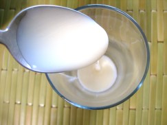 2. Drizzle condensed milk into a small pitcher or glass measuring cup with a good pouring spout. I use a higher condensed milk-to-tea ratio for the popsicles than for the drink, to make them sweeter and creamier.