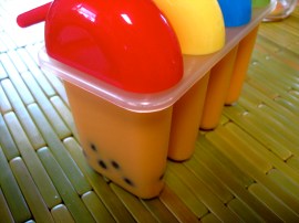 Yep, I know what you mean– the chewy texture of tapioca bubbles takes some getting used to… They didn’t keep that nice texture when frozen though, so I still think the bubbles are better in the drink, and the popsicles are still awesome without.