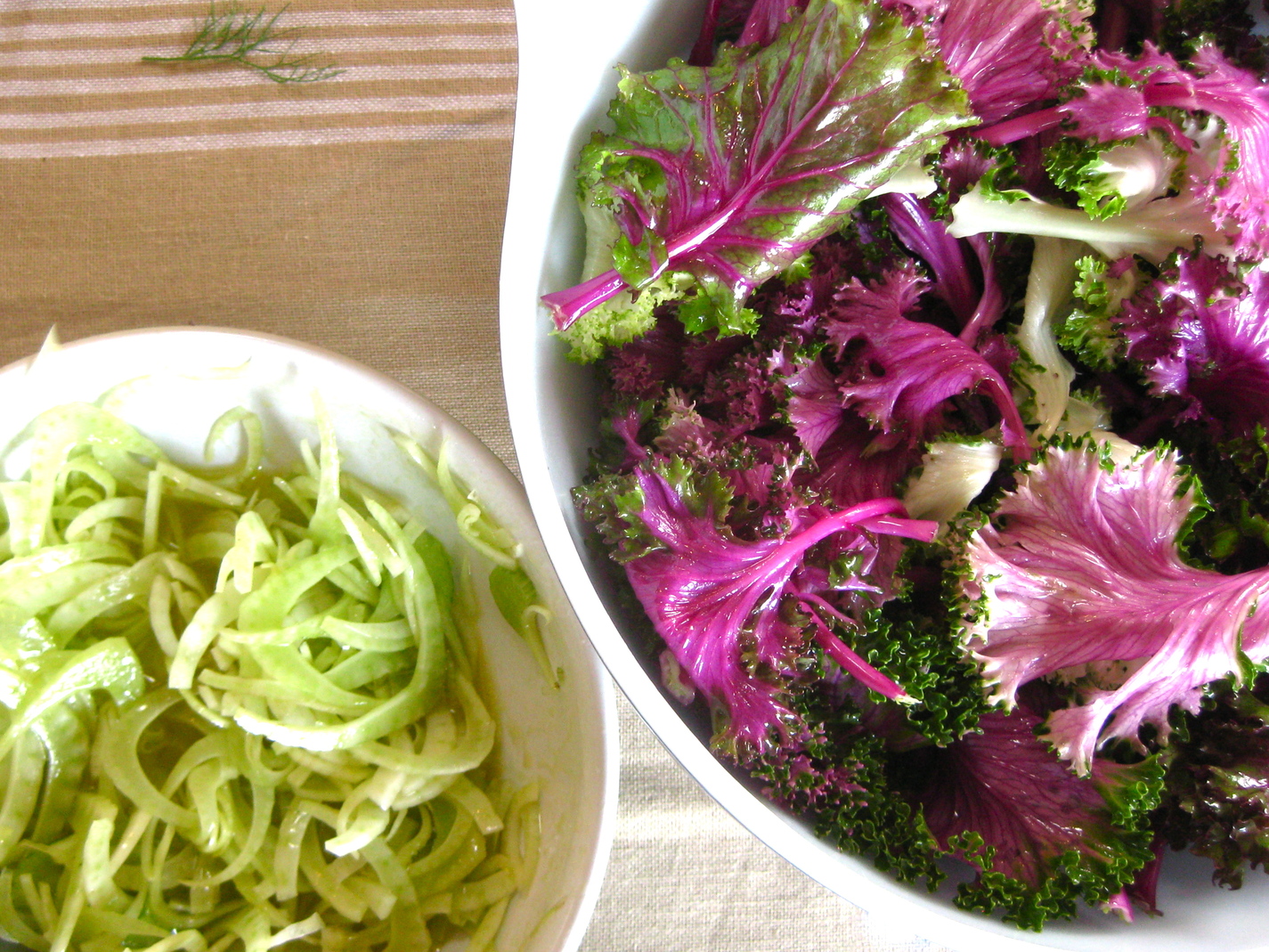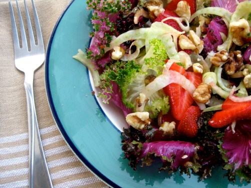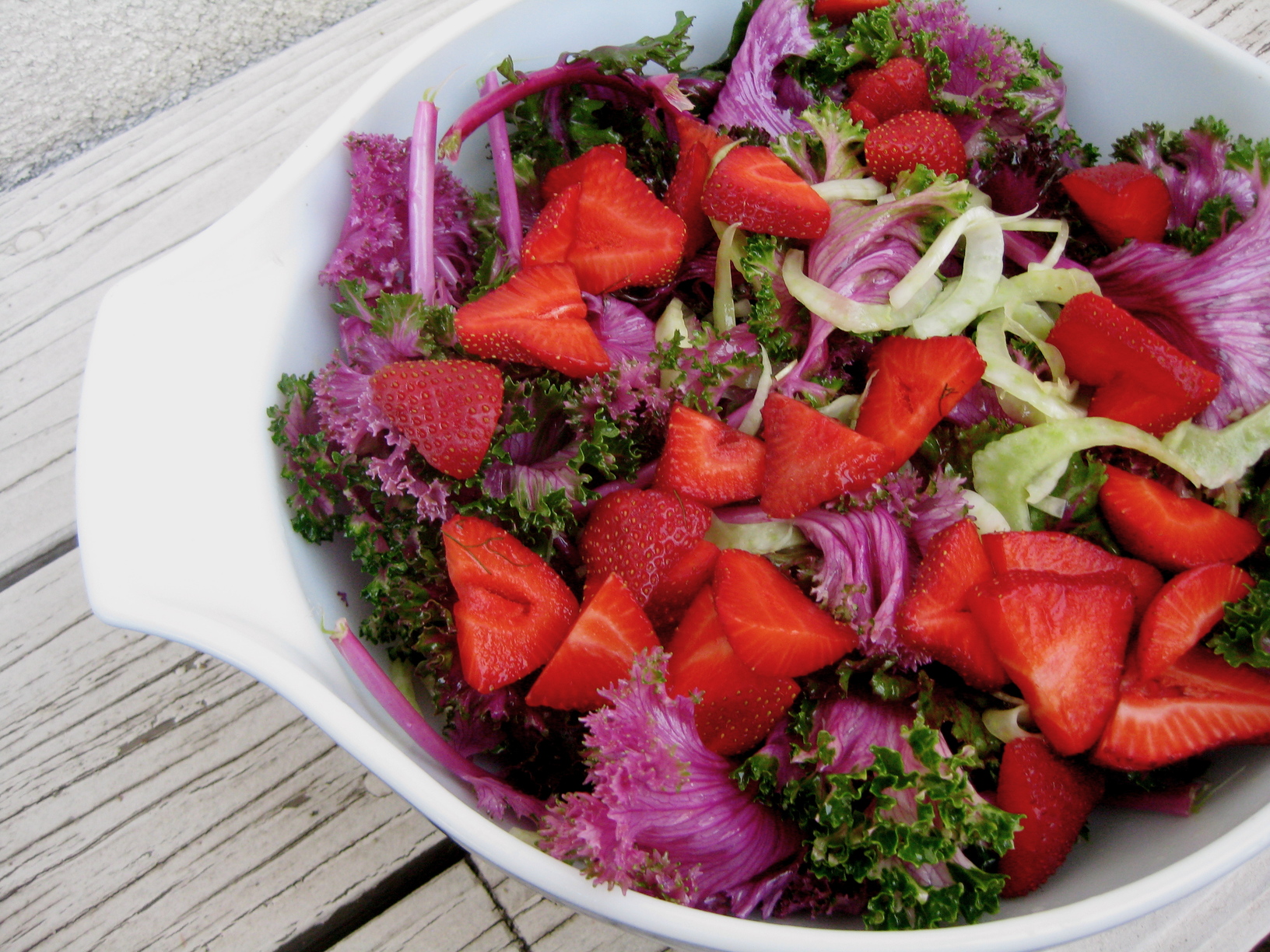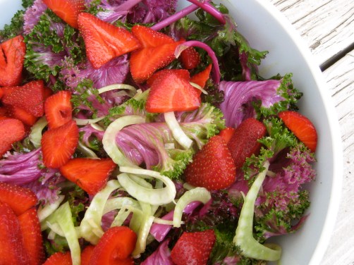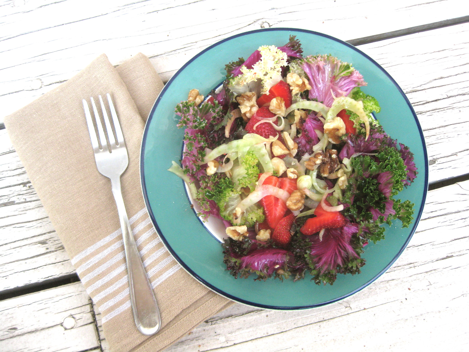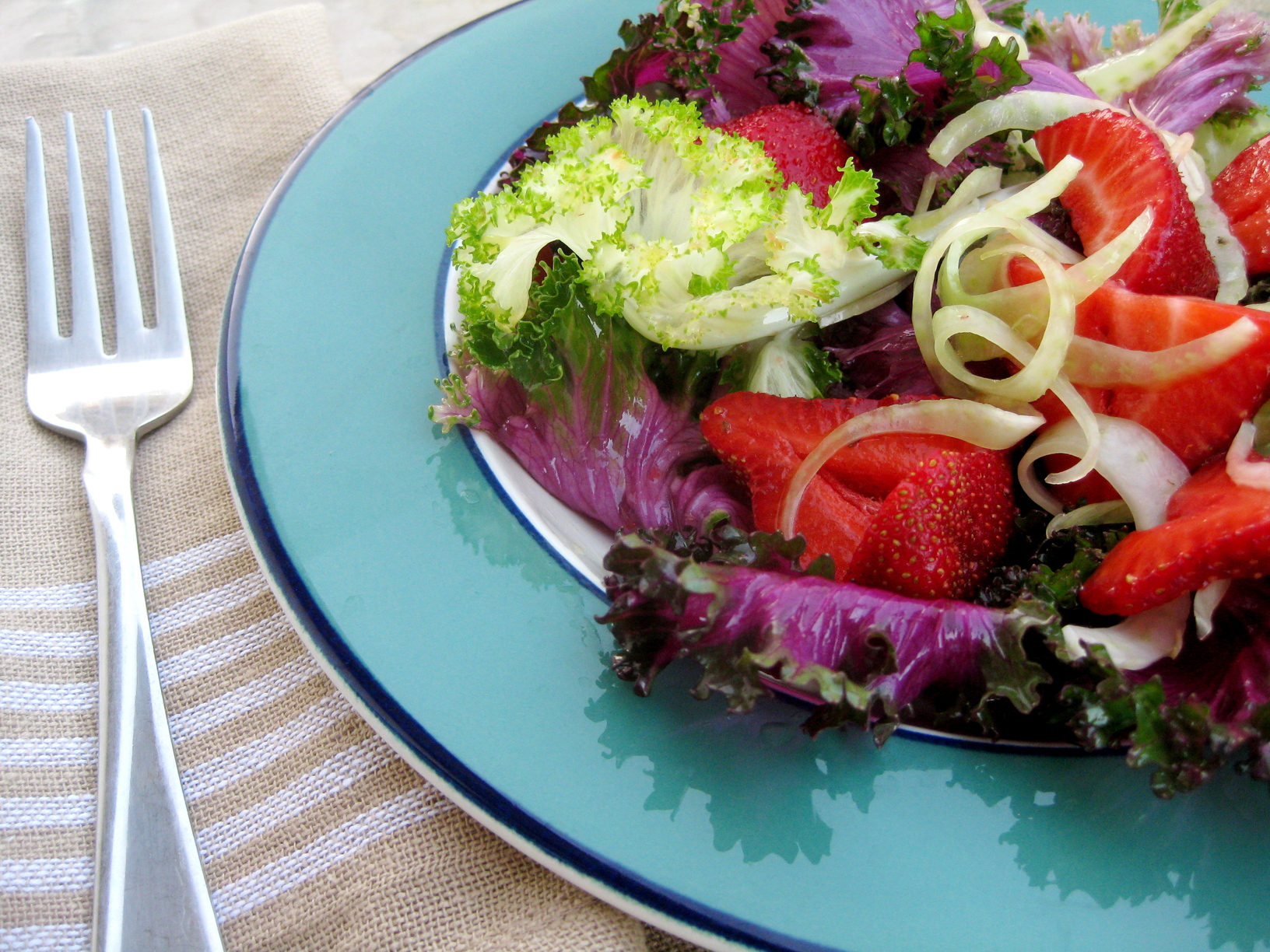 Shaved Fennel Salad with Strawberries and Purple Kale