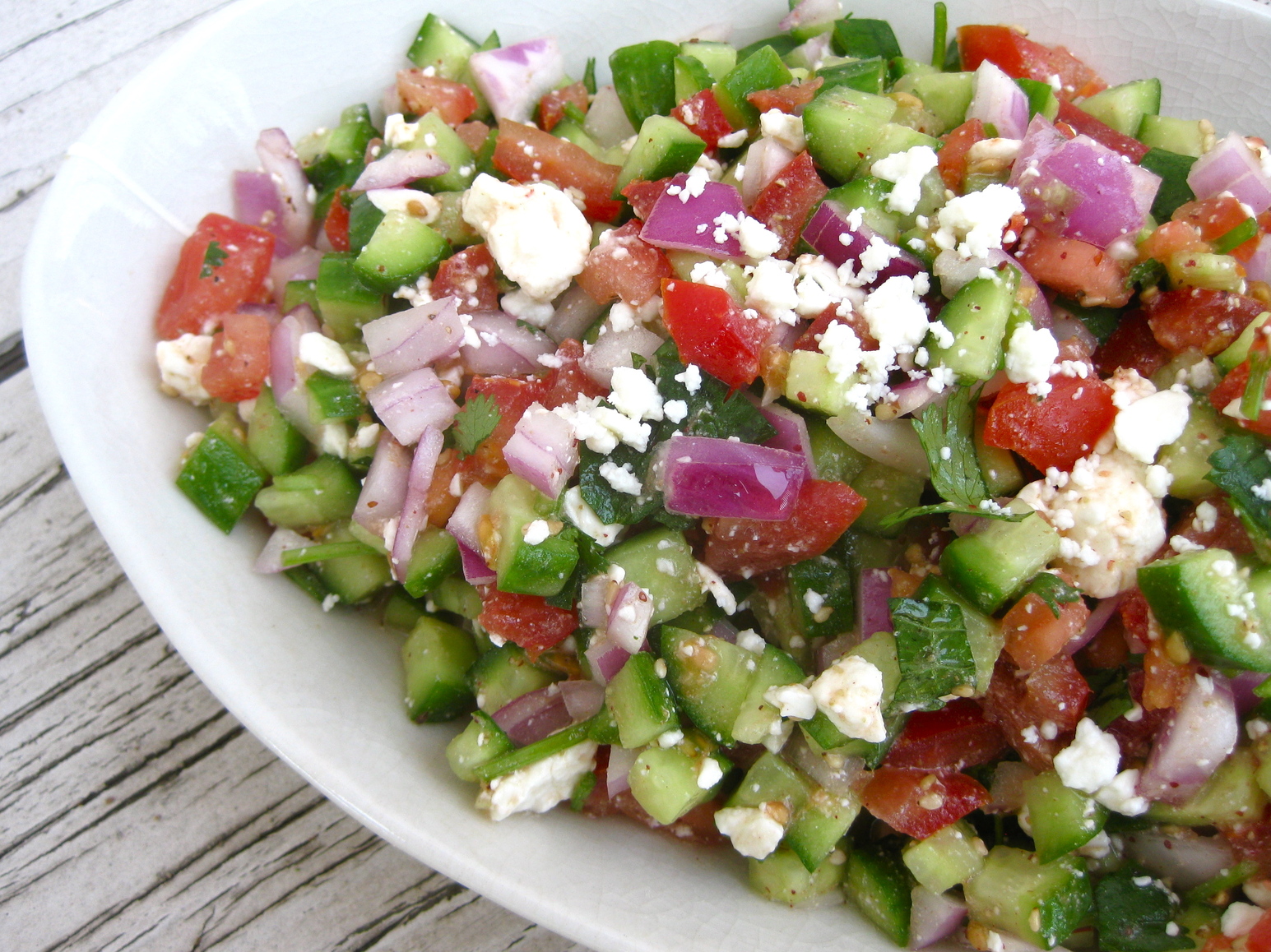 Shepherd's Salad with Cucumber, Tomato, Red Onion, and Feta