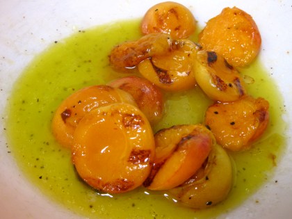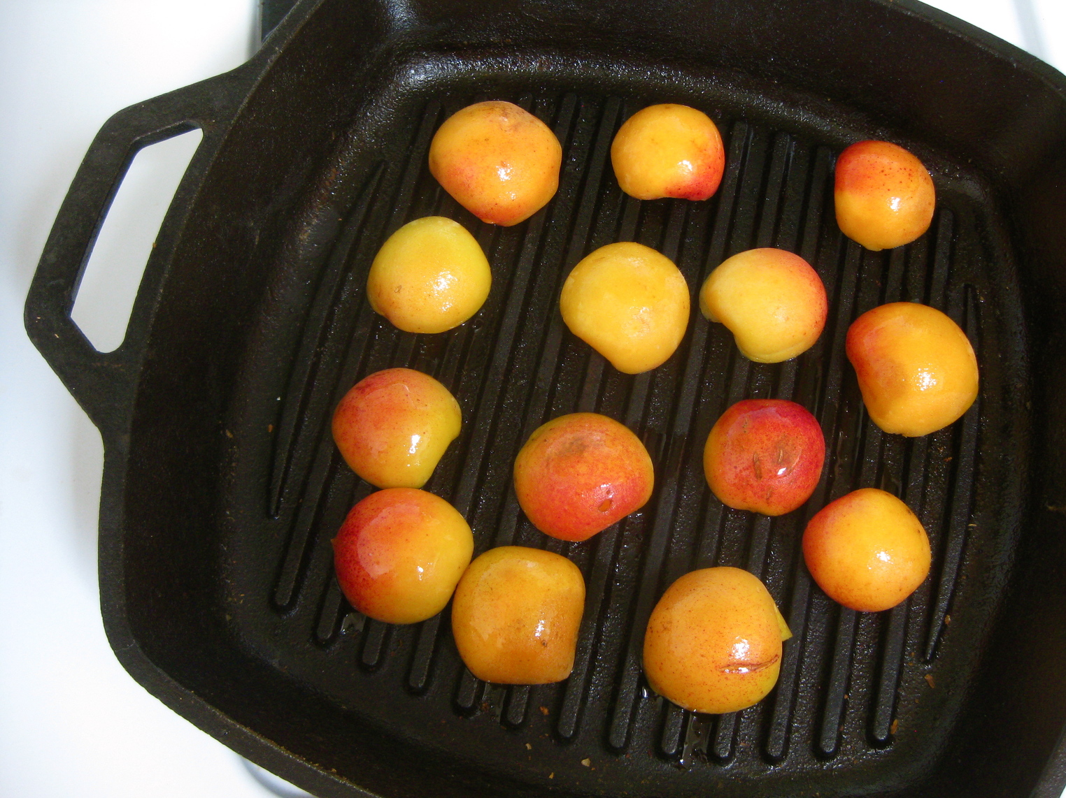 Somehow the pounds of mini apricots evaporated from my kitchen faster than I would have believed. I’m happy I gave this recipe a try before they finished evaporating. My grill pan will certainly glisten with fruit juices again sometime soon.