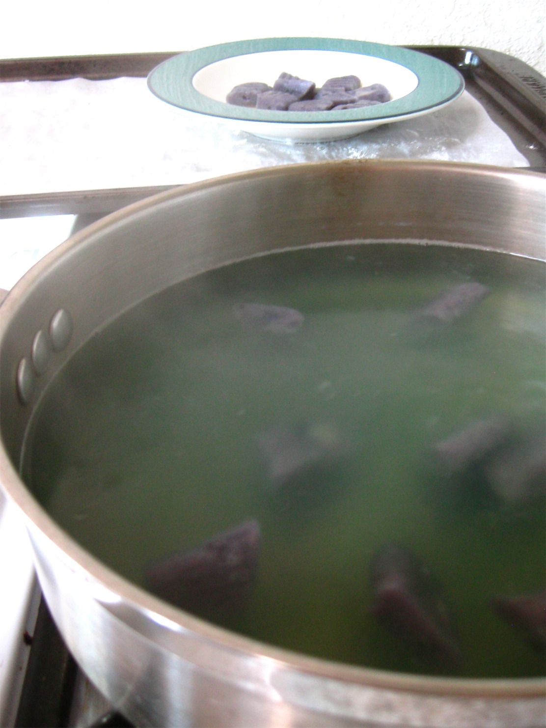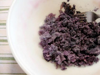 I’ve been dreaming (once, literally) of making creamy orange gnocchi from sweet potatoes. But that will have to wait until another day. When my girlfriend brought home a sack of organic purple potatoes in her bike basket, I knew just what to do.