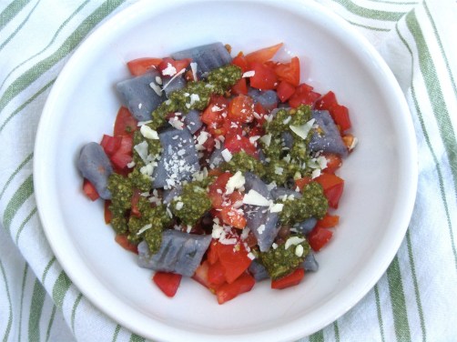 Thank you! I was happy the pasta stayed so purple (instead of turning gray or something…), and I didn’t want to smother it in a creamy or liquidy sauce that would hide the purple, so that’s how the even more colorful pesto + tomatoes idea came about! :)