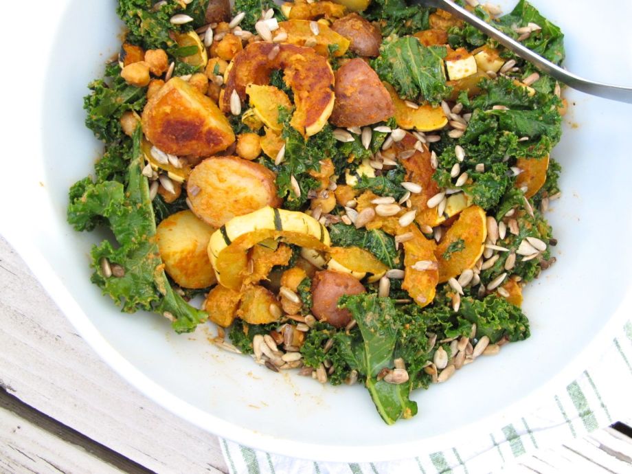 Roasted Delicata Squash with Chickpeas, Potatoes, and Kale