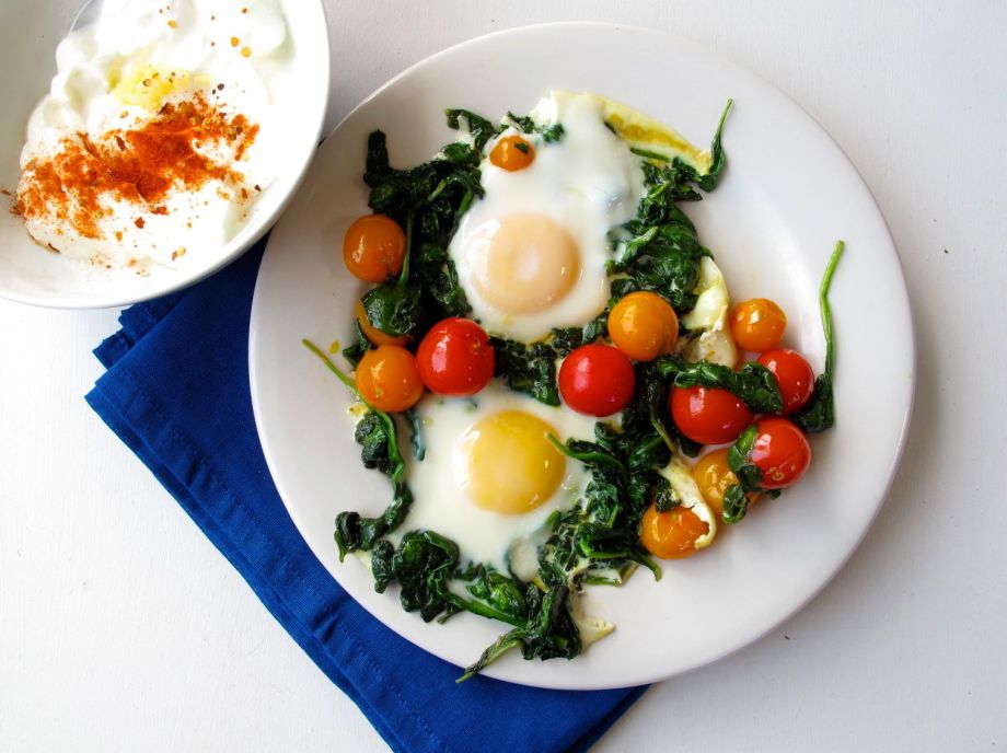 Skillet-Baked Eggs with Garlicky Yogurt