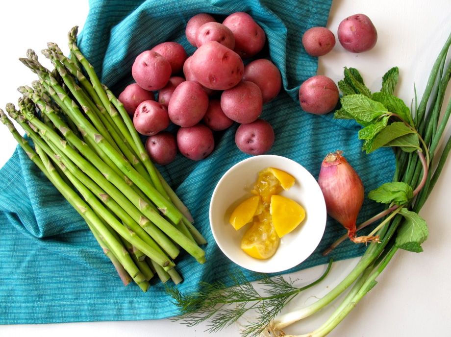 Asparagus Salad with Preserved Lemon Dressing and Passover Potatoes