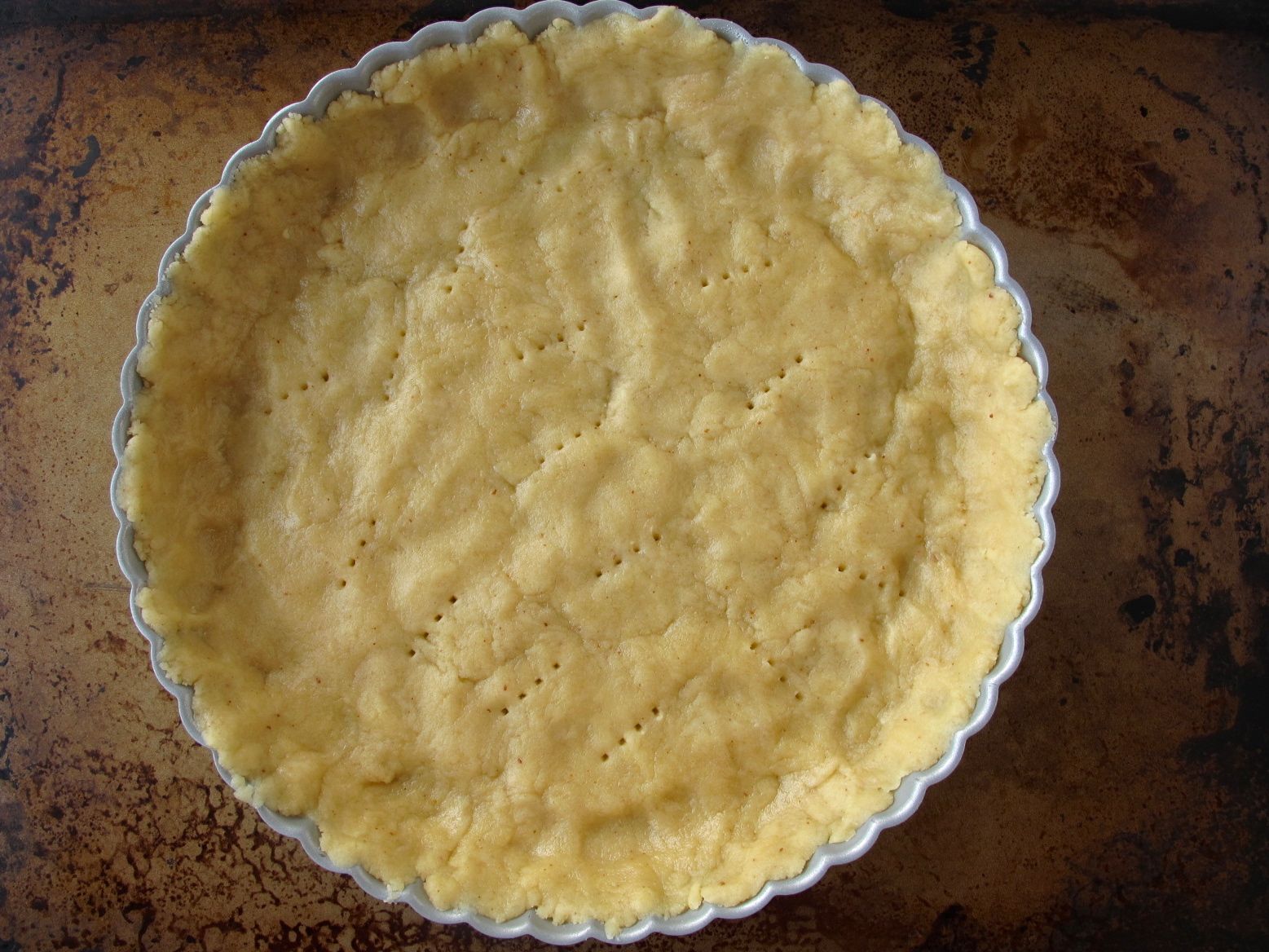 The tart crust, ready to bake        Making Brown Butter Strawberry Rhubarb Tart