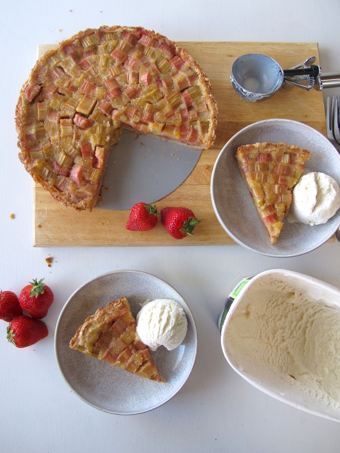 I’m not sure if you’ll be able to find rhubarb there now if you can’t find strawberries, but just so you know, I’ve also made this tart with only rhubarb (skipping the layer of strawberries), and just slightly increased the amount of sugar in the filling, and it was still delicious!