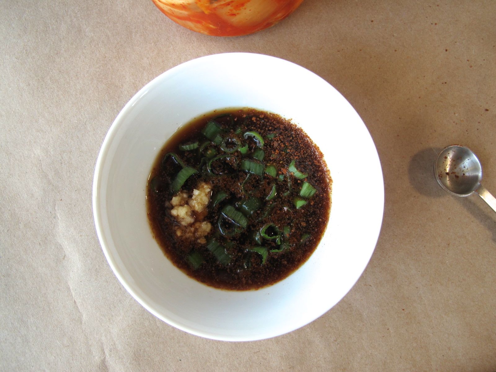 I’m including the dipping sauce that I like to make for jeon here. Just in case you want to take your single-pan, under-30-minute, kimchi+flour+water, appetizer-for-dinner experience up a notch.