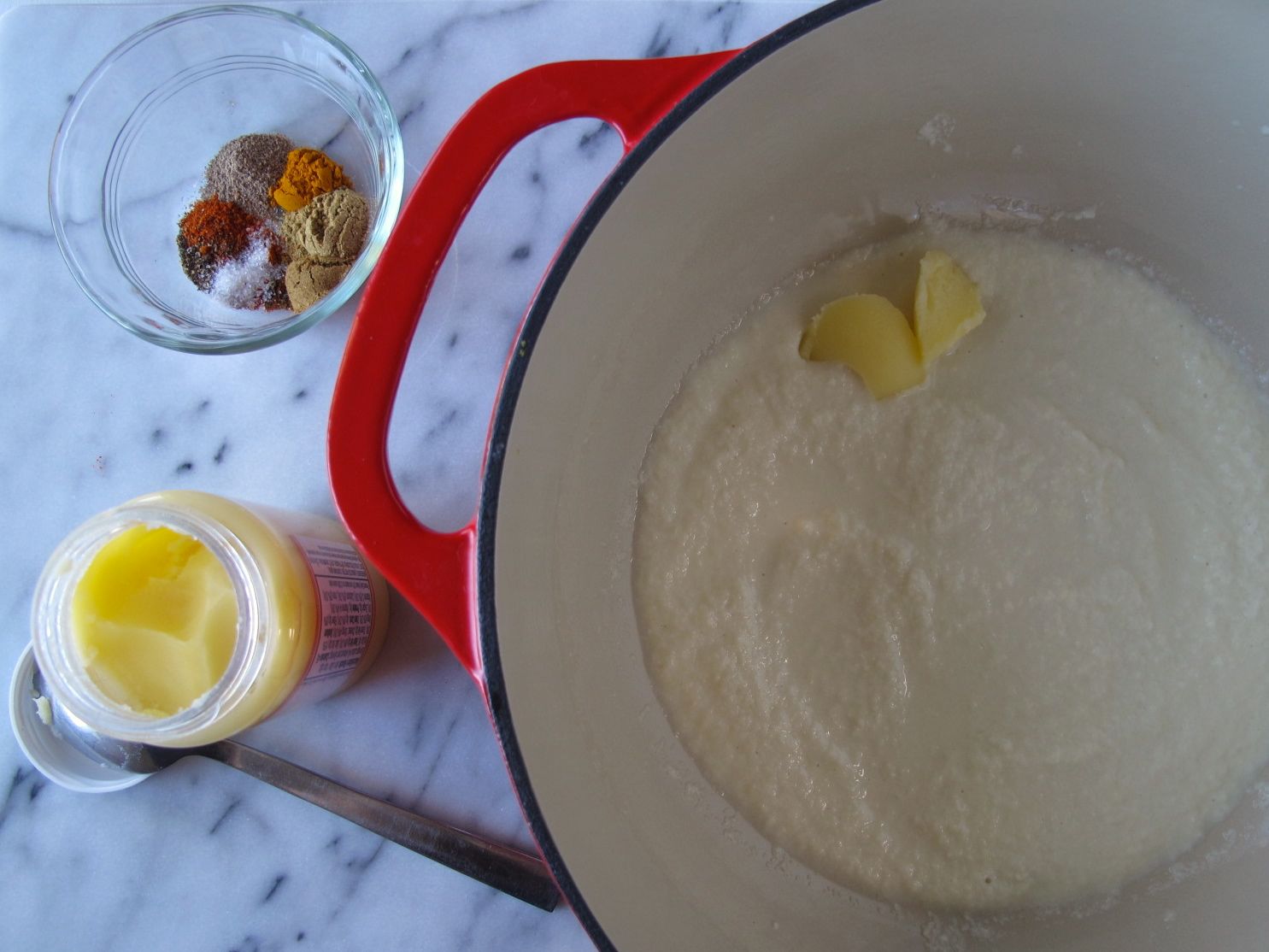 Since the aromatics have been blended with a little coconut milk, you don’t really need to add any butter, oil, or ghee to fry them in, so I left all that out the first time I ever made this. Paula and I both enjoyed our meal, but something still tasted like it was missing…