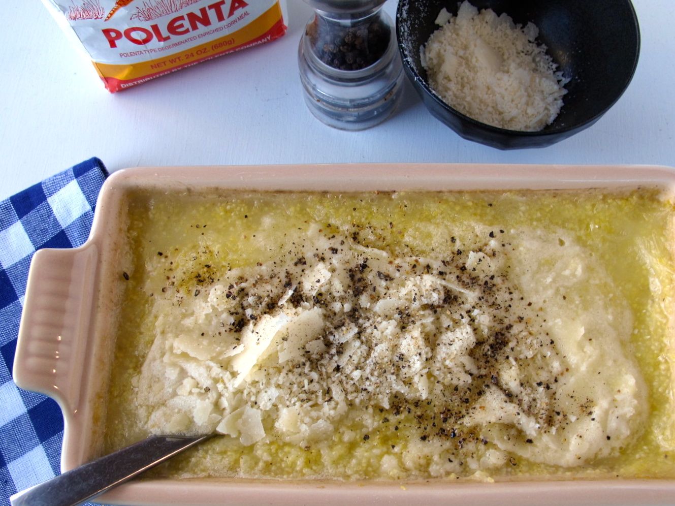 Making Parmesan Black Pepper Polenta (Baked, then Grilled)