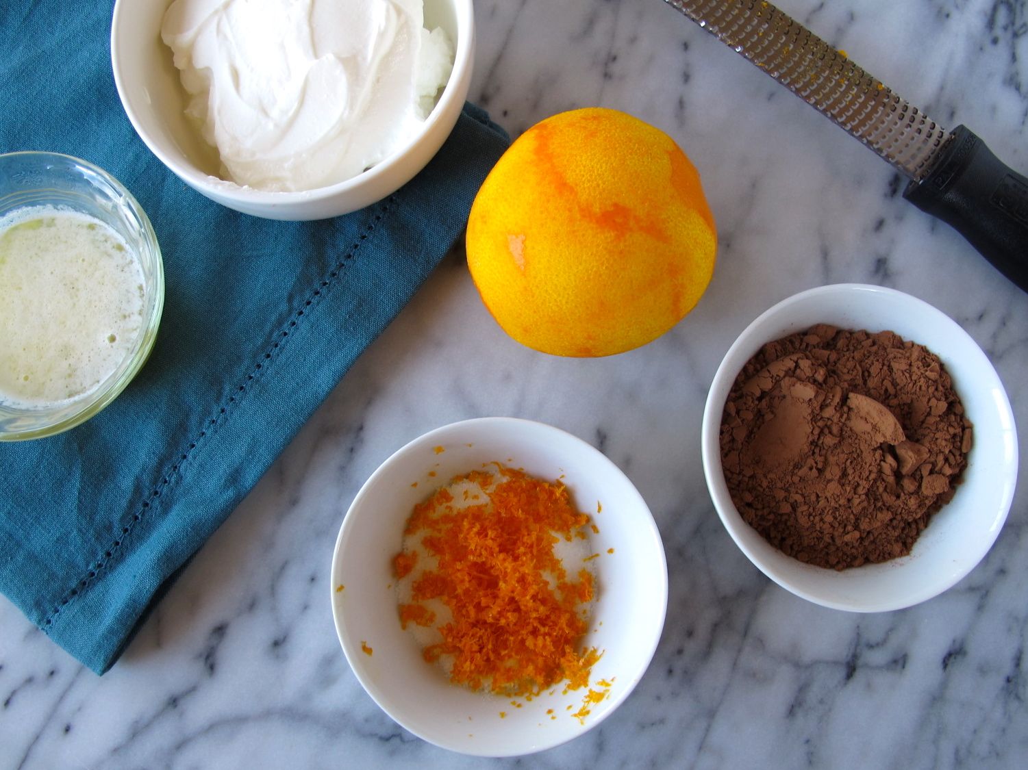 Cocoa powder and orange zest sugar for Orange Chocolate Pancakes