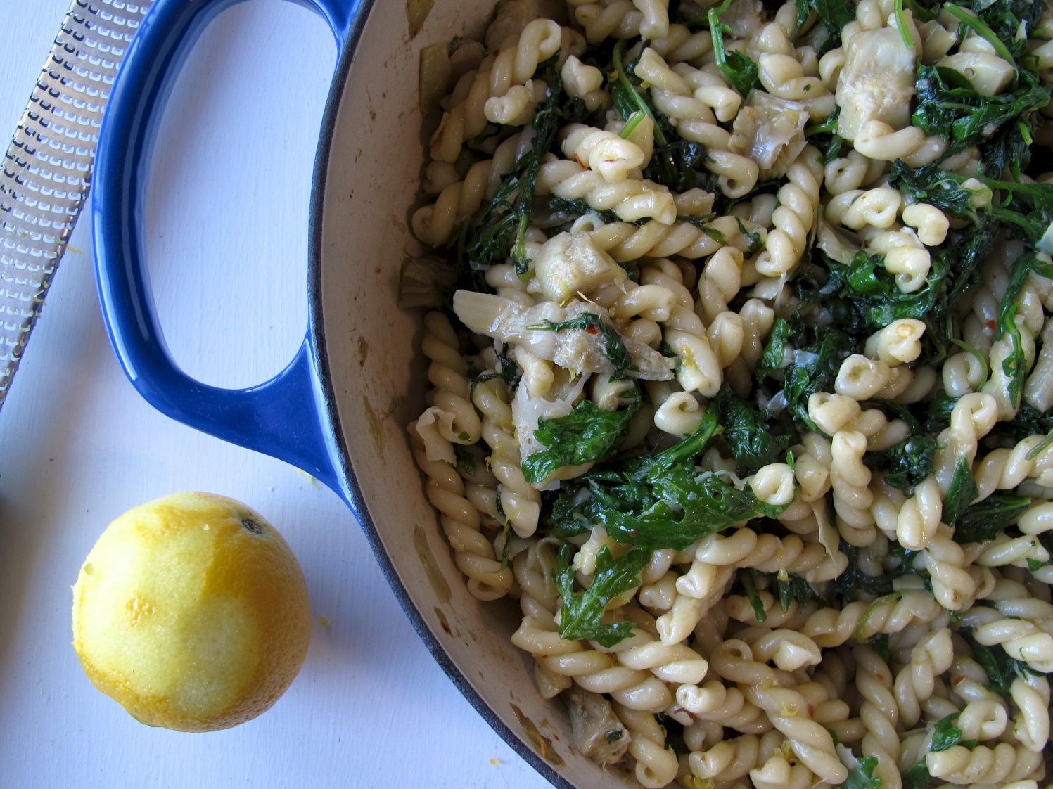 This dish is different. I suppose the artichokes have the potential to be a little bland, if they come packed in water (vs. marinated in oil), and if they don’t get enough cooking time in the garlicky olive oil, but like I said, it doesn’t even need the cheese. (Which is no reason to forego it; I’m just saying it wouldn’t be the worst tragedy if you didn’t have any around.)