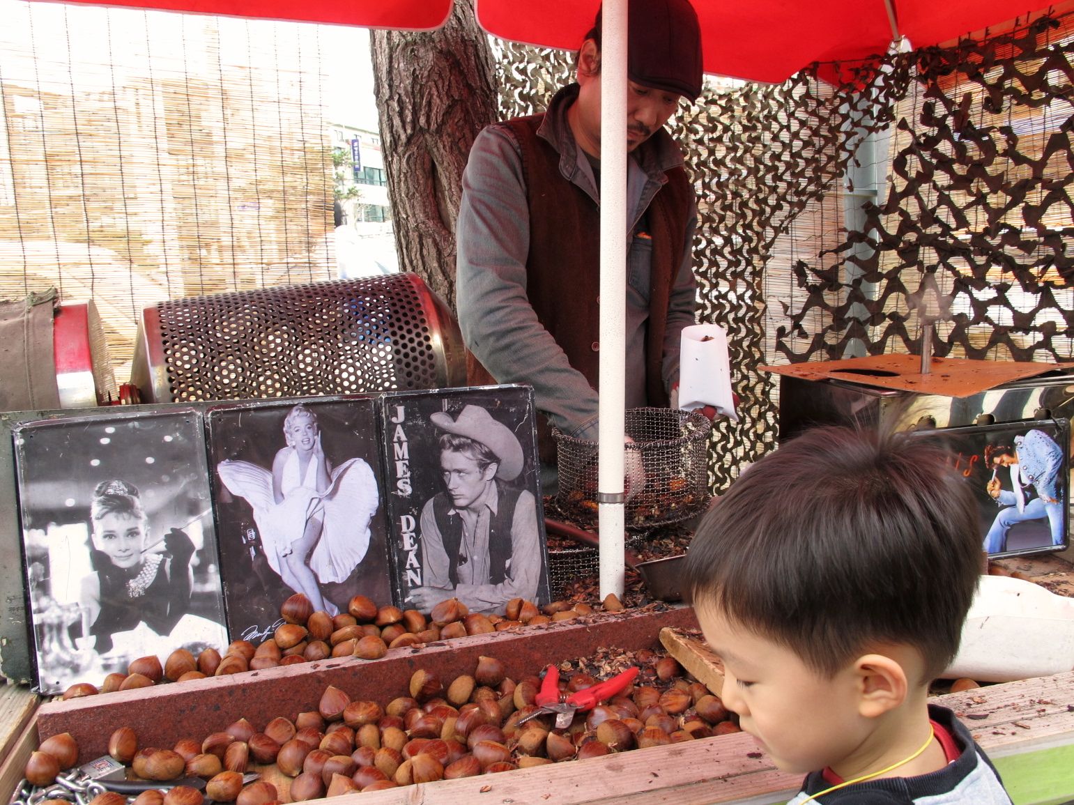 The weather was actually so chilly and fall-like, that we found someone selling hot roasted chestnuts on the street! (So delicious, and so hot they burned our fingers warmed our hands up.)