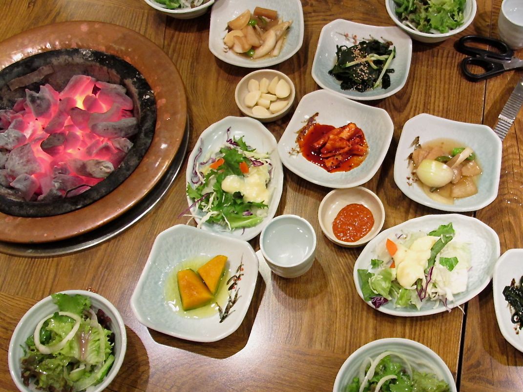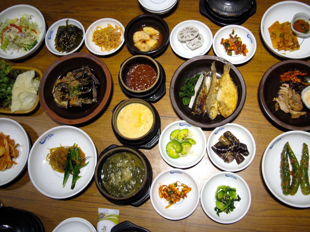 In fact, at the only two Icheon salbap restaurants I’ve ever been to, they bring you so many side dishes that rather than setting each one down on the table, they bring over a whole new tabletop already stocked full of dishes, and just slide it on top of your current table and lock it into place. Here’s the view from above: